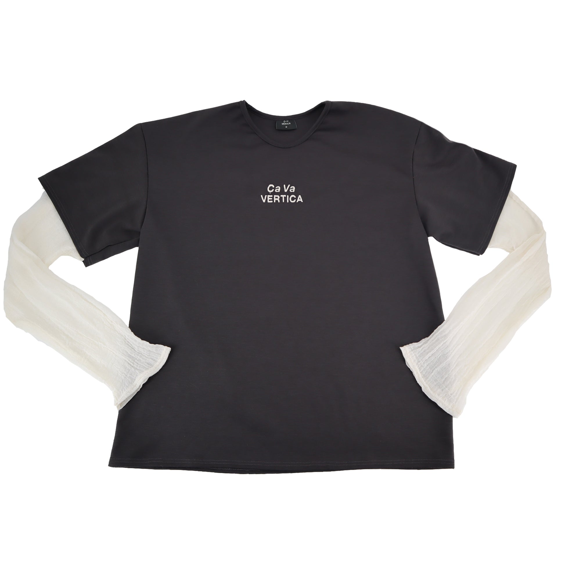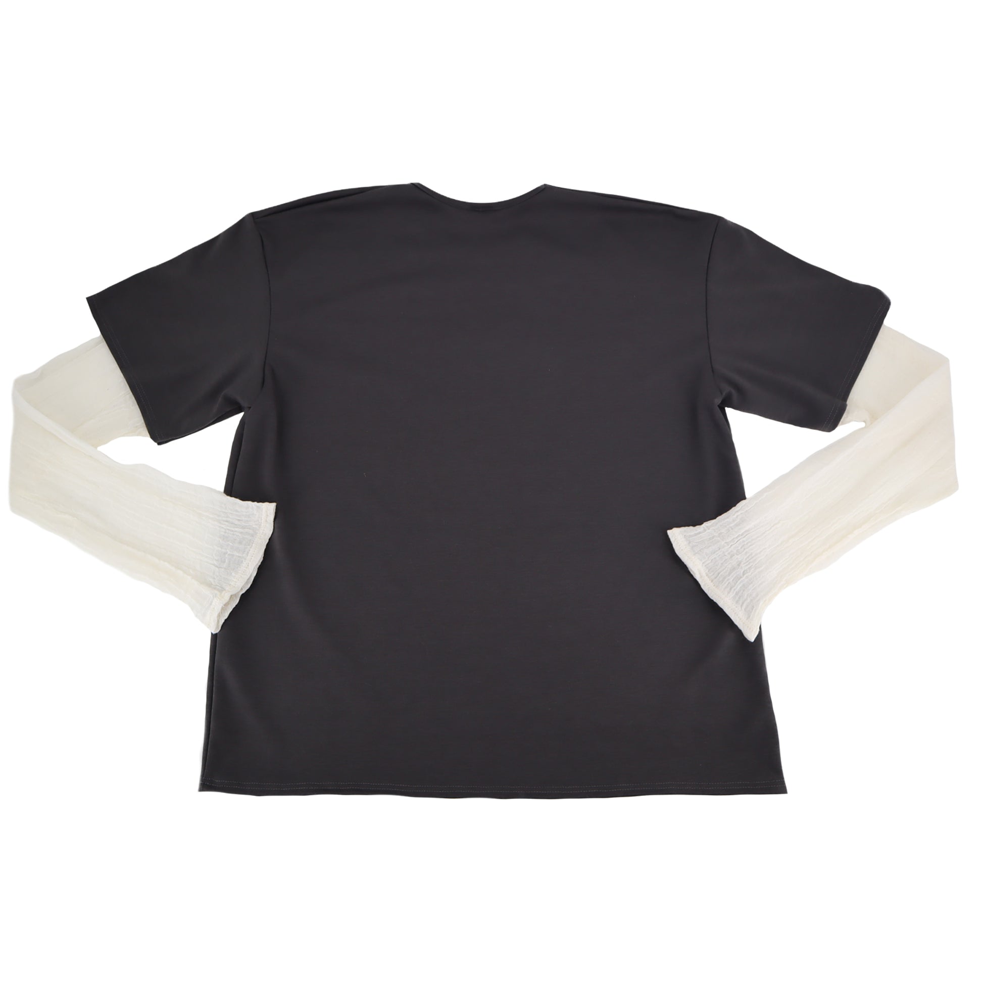 the capsule includes 3 variations of sleeves, some in lace and some in cotton chiffon. we love the look of elongated cuts and bell sleeves, so that is included in the design as well. the base is made with a heavier cotton that is stretchy and soft. it has a boxy fit that looks great whether you like to wear your pieces oversized or true to size.