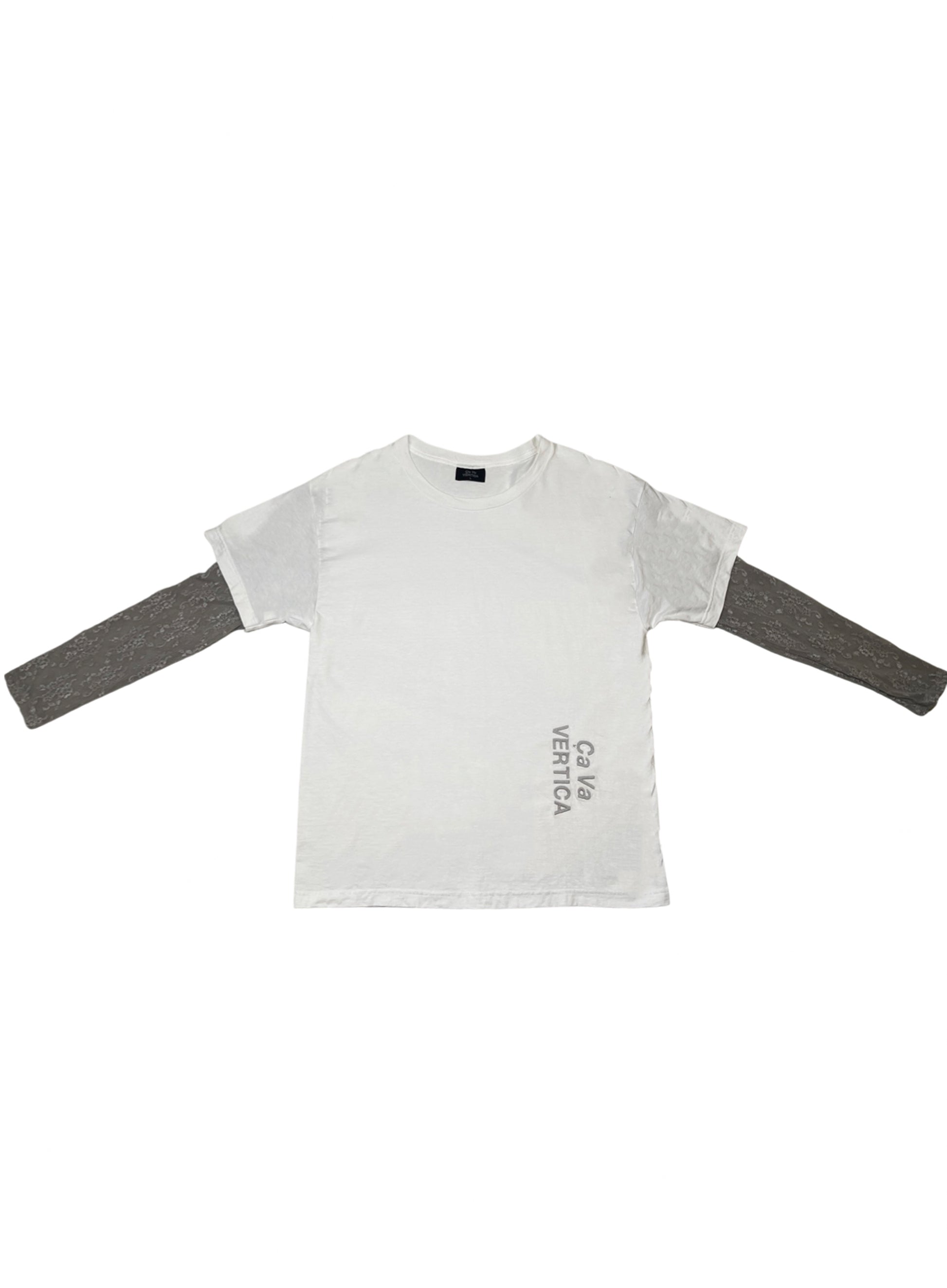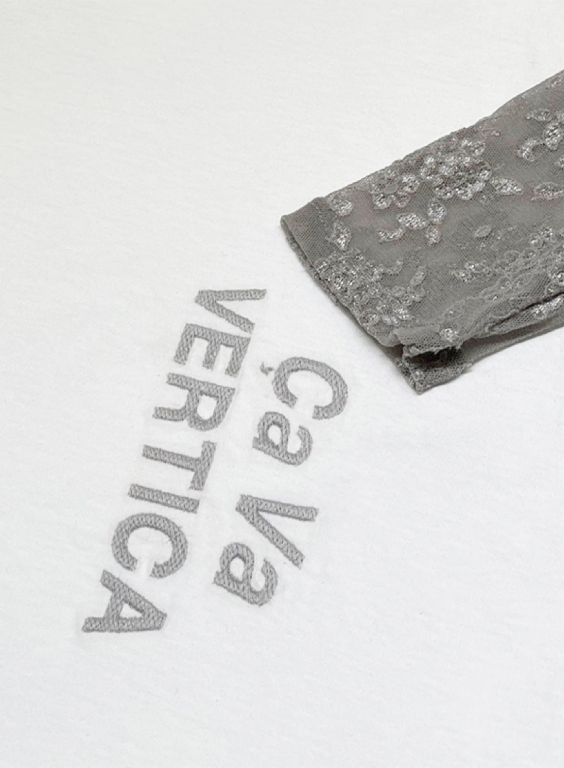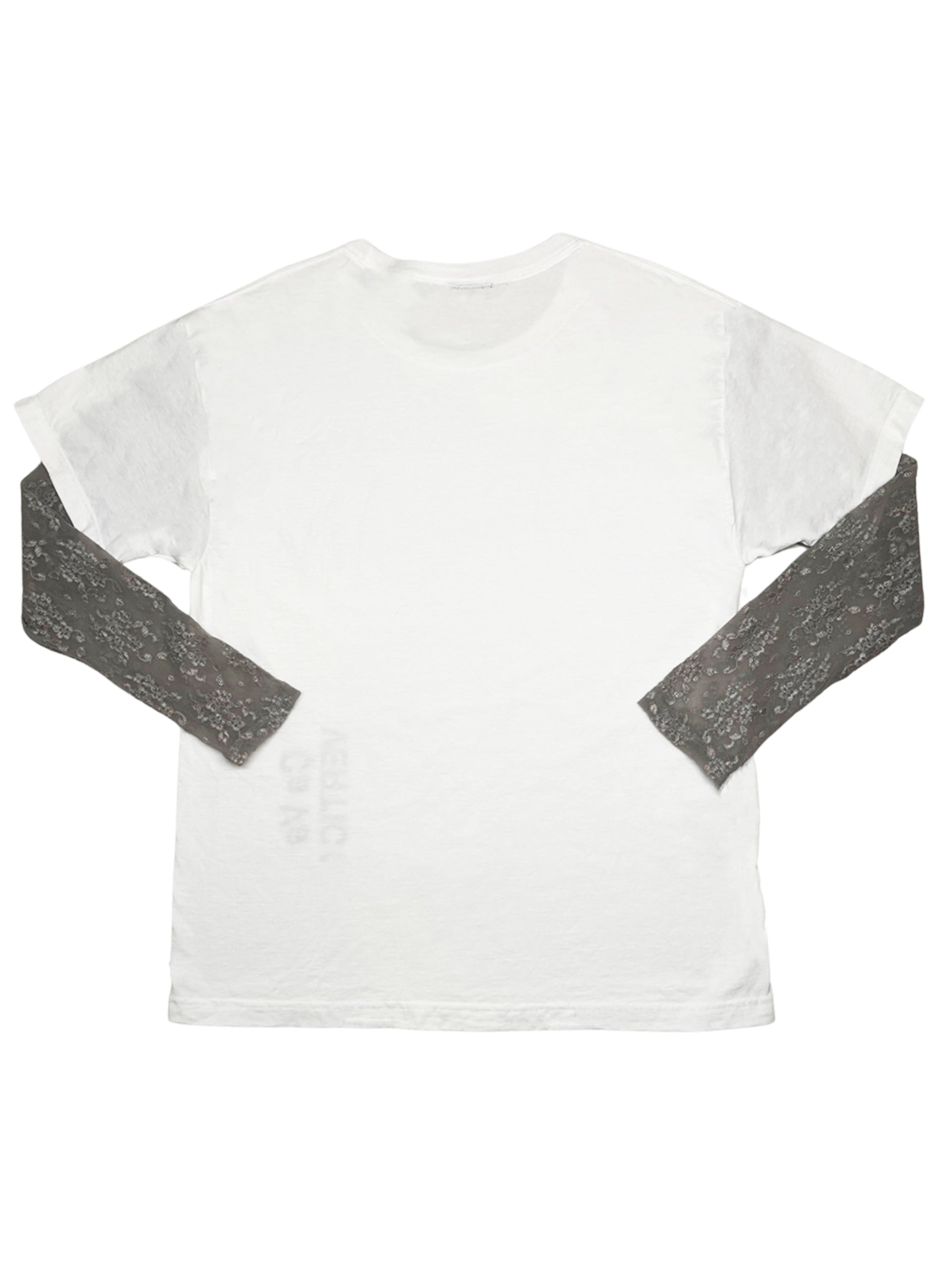 Second hand lace sleeves, 100% cotton tee, & embroidery