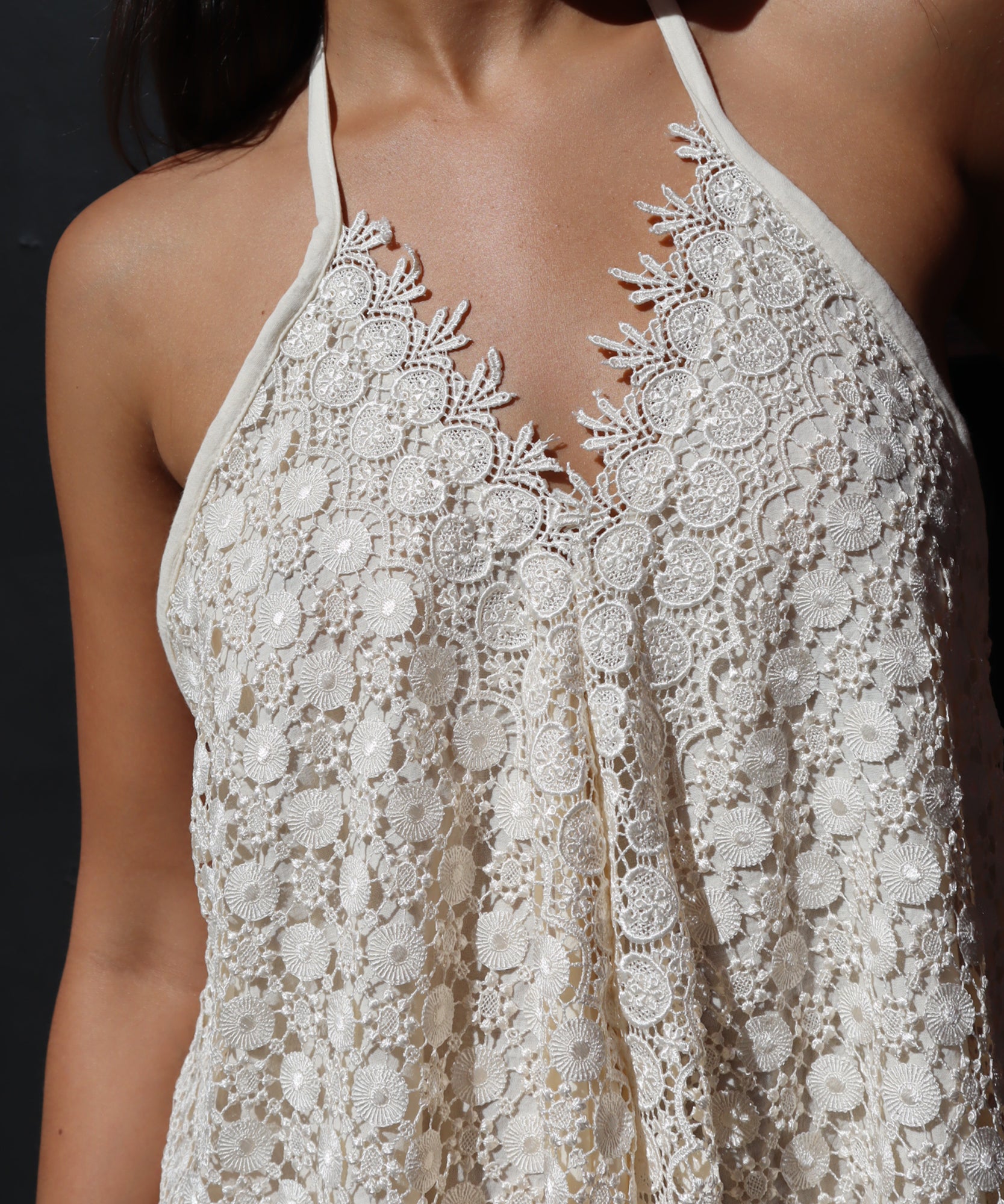 overlayed in 100% cotton lace mesh