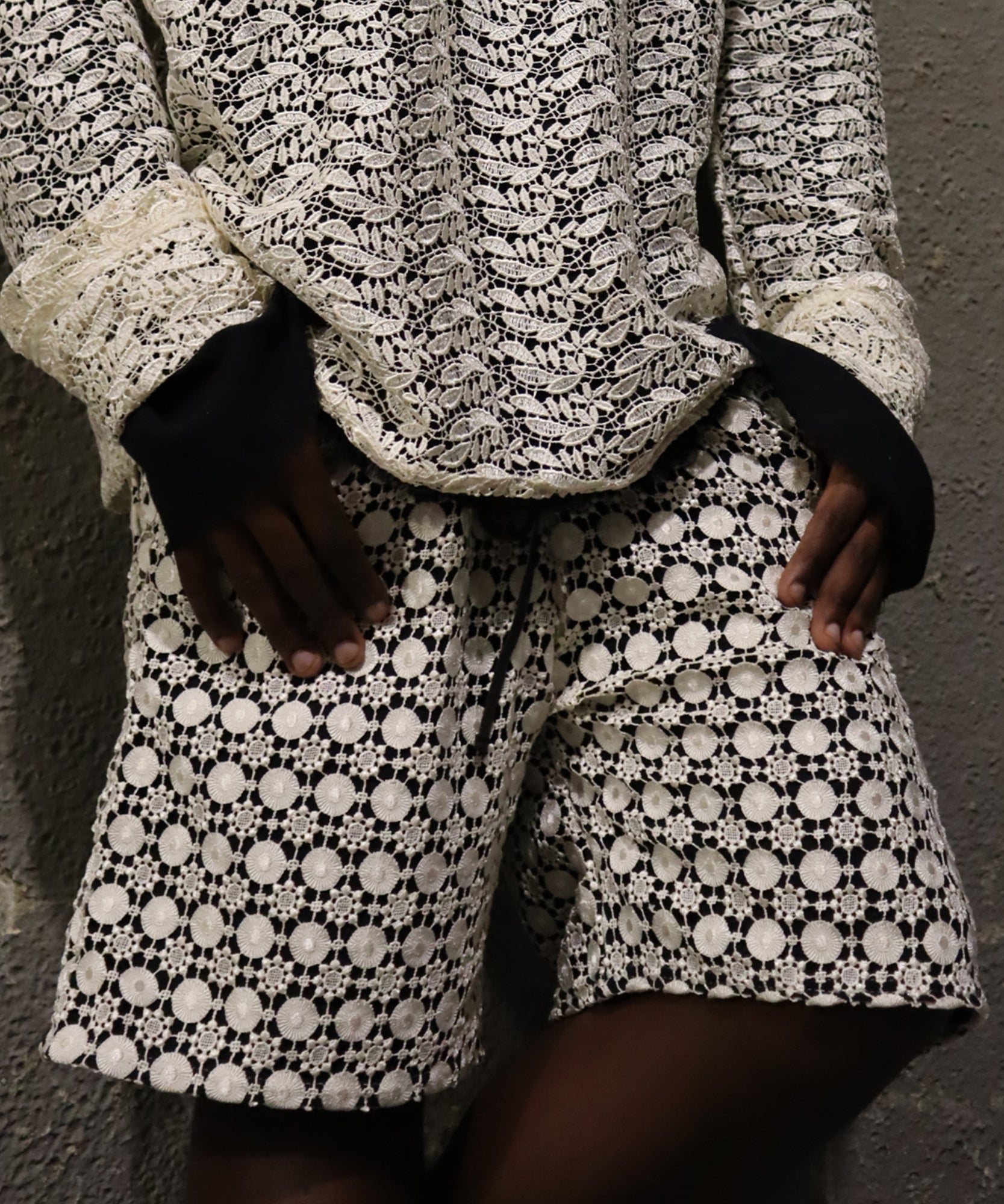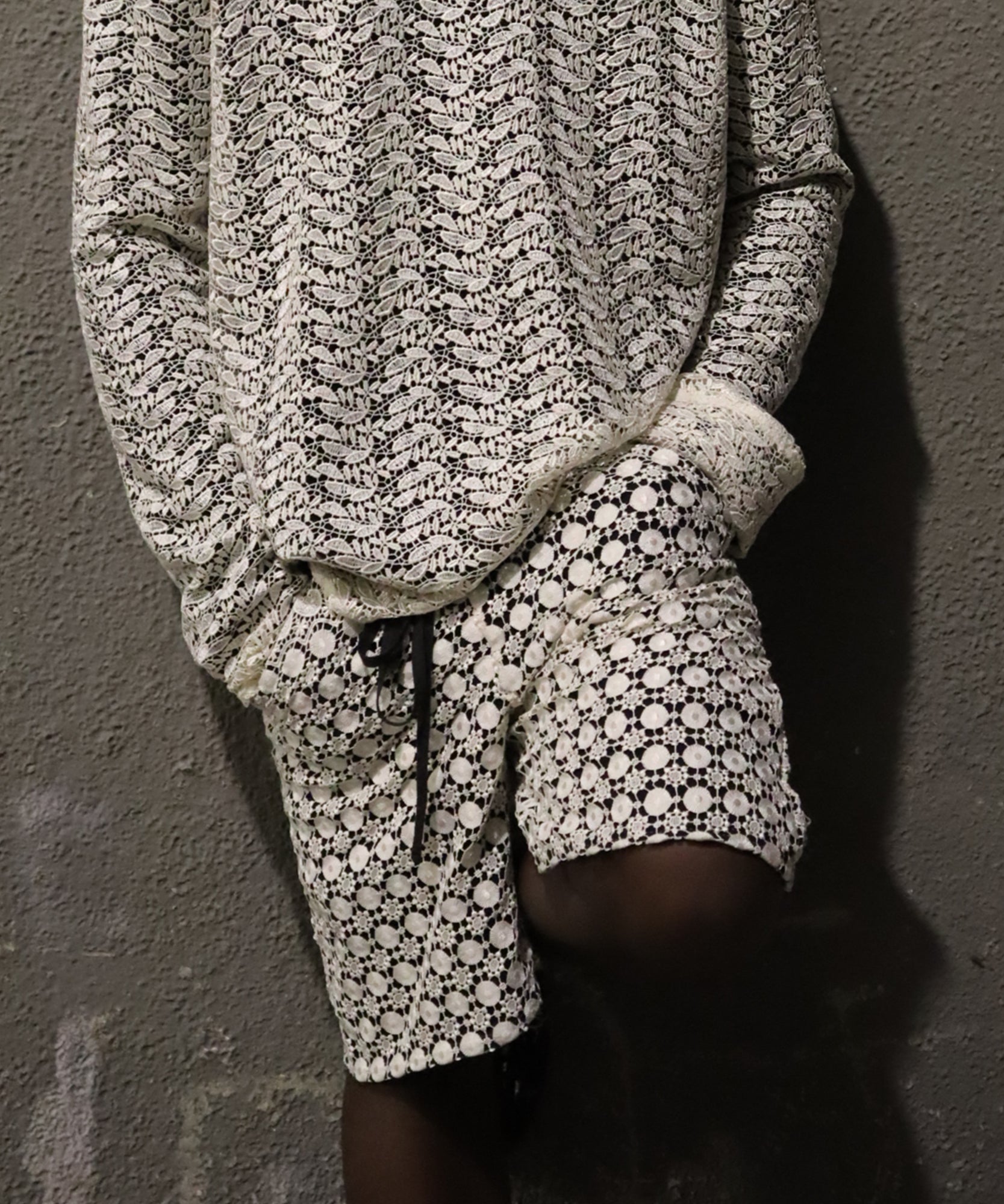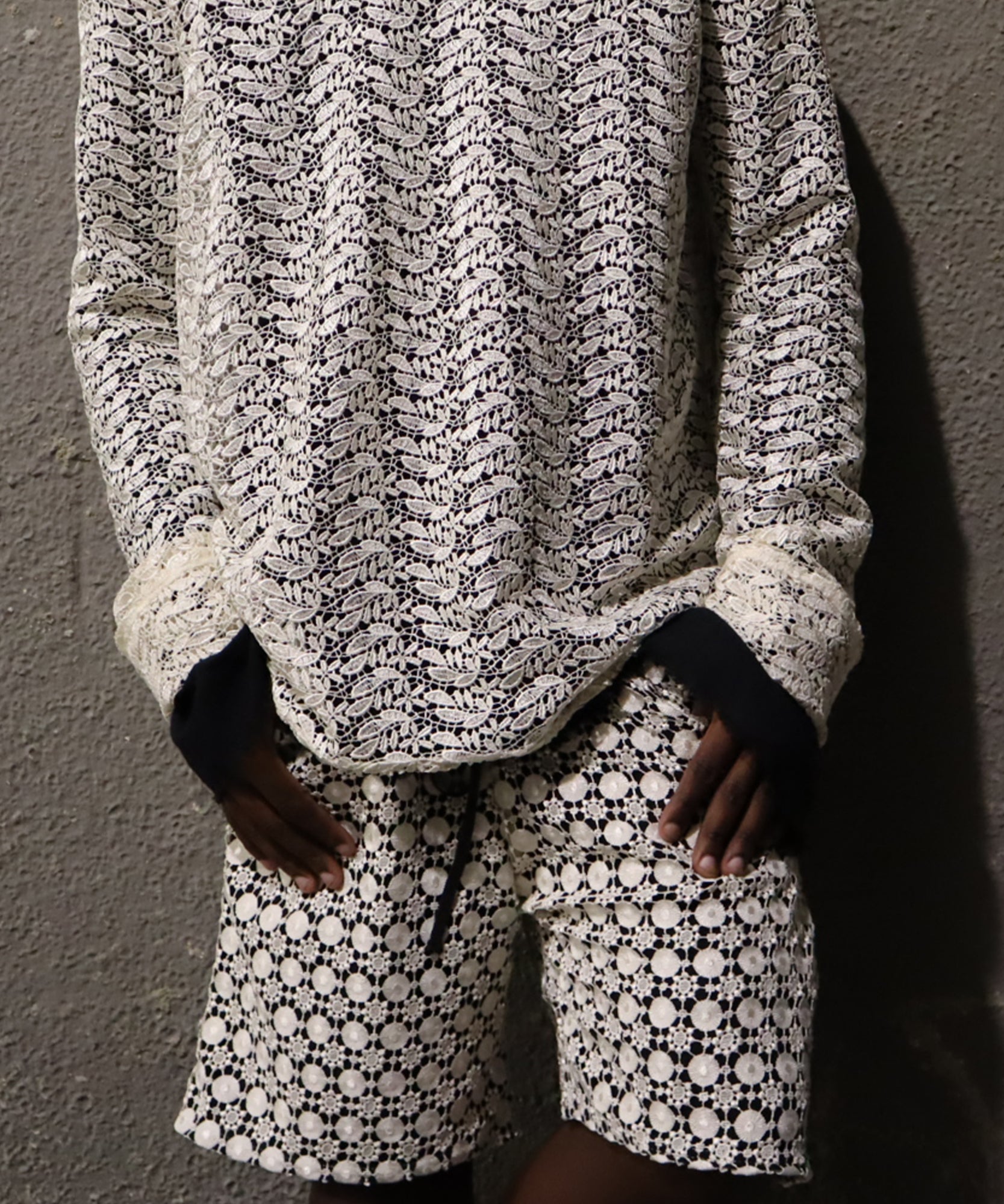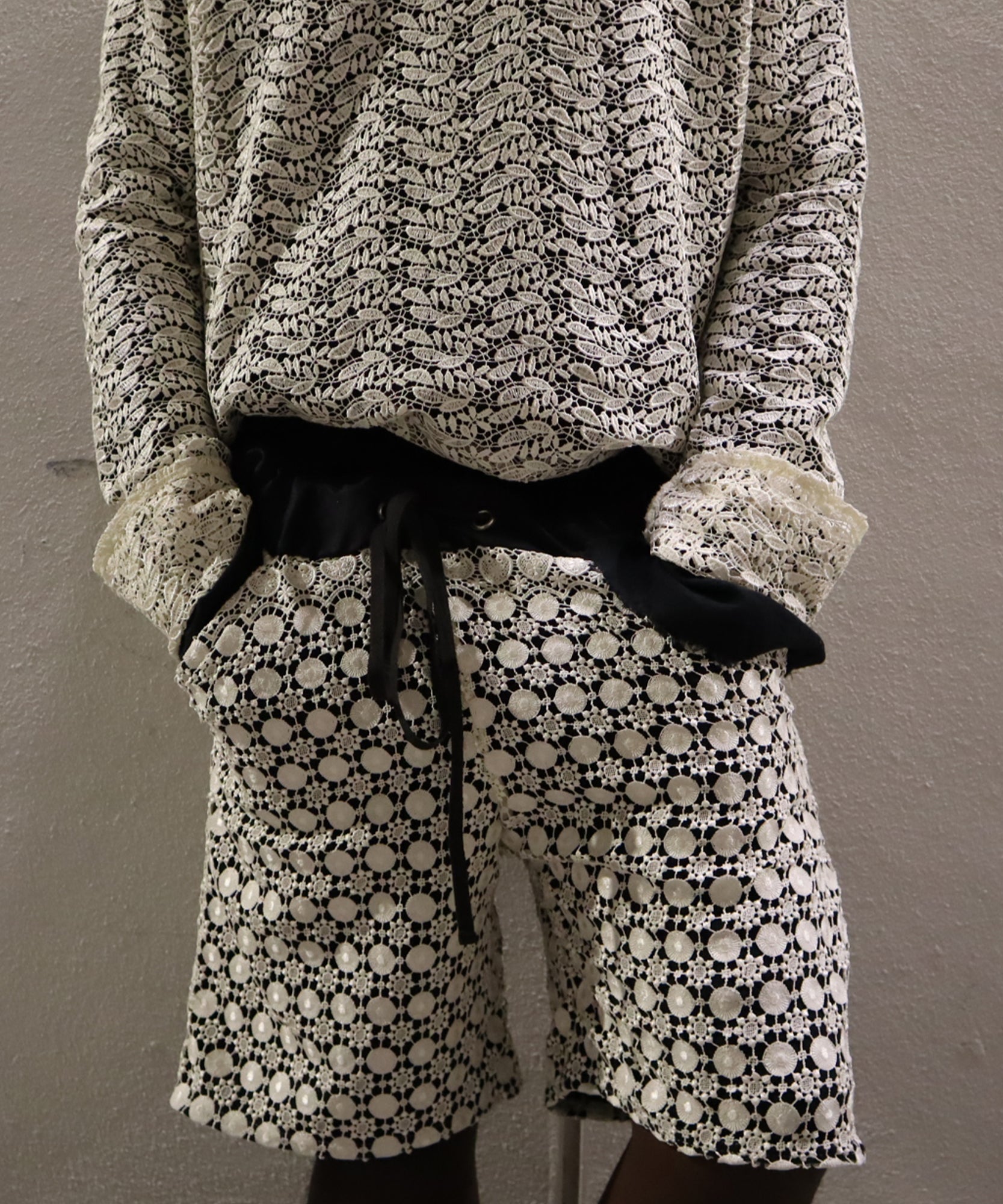 drawstring shorts, lining cotton gauze, overlay cotton mesh