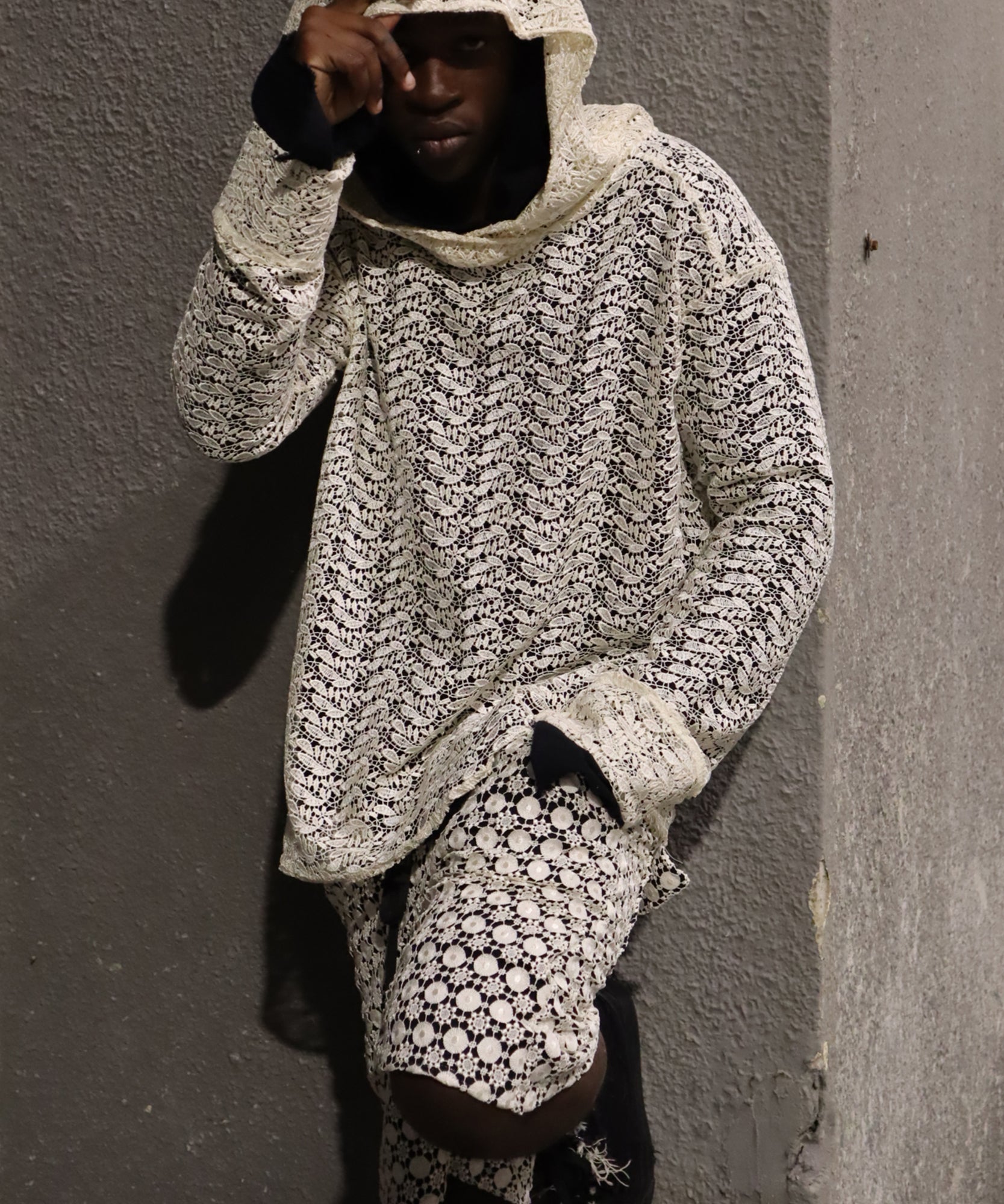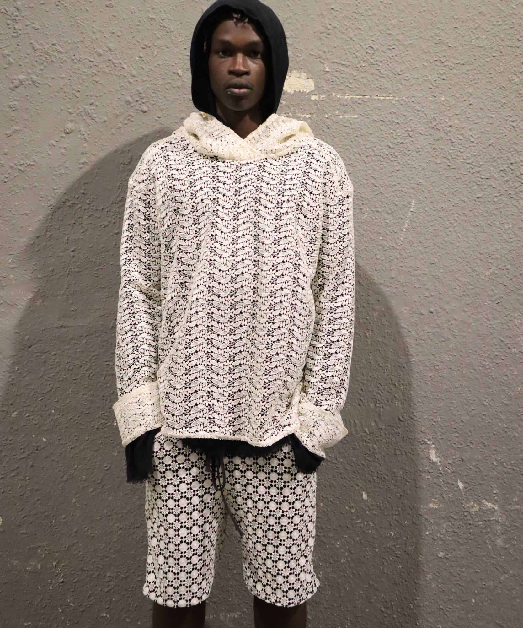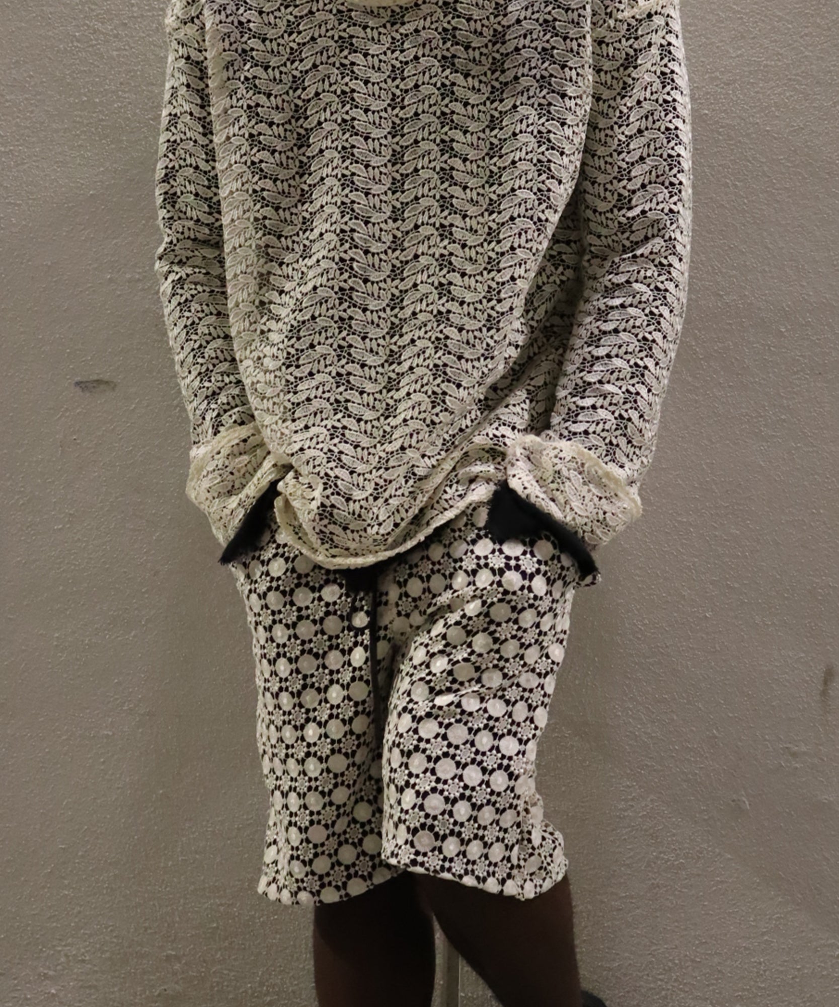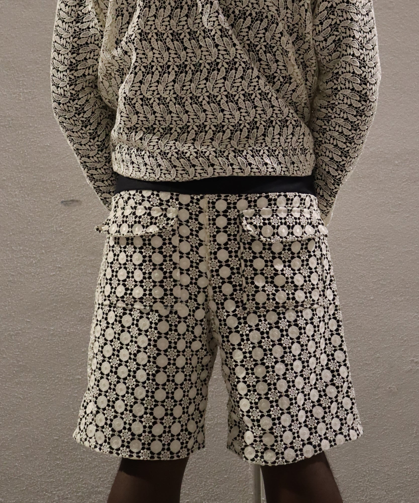 drawstring shorts, lining cotton gauze, overlay cotton mesh