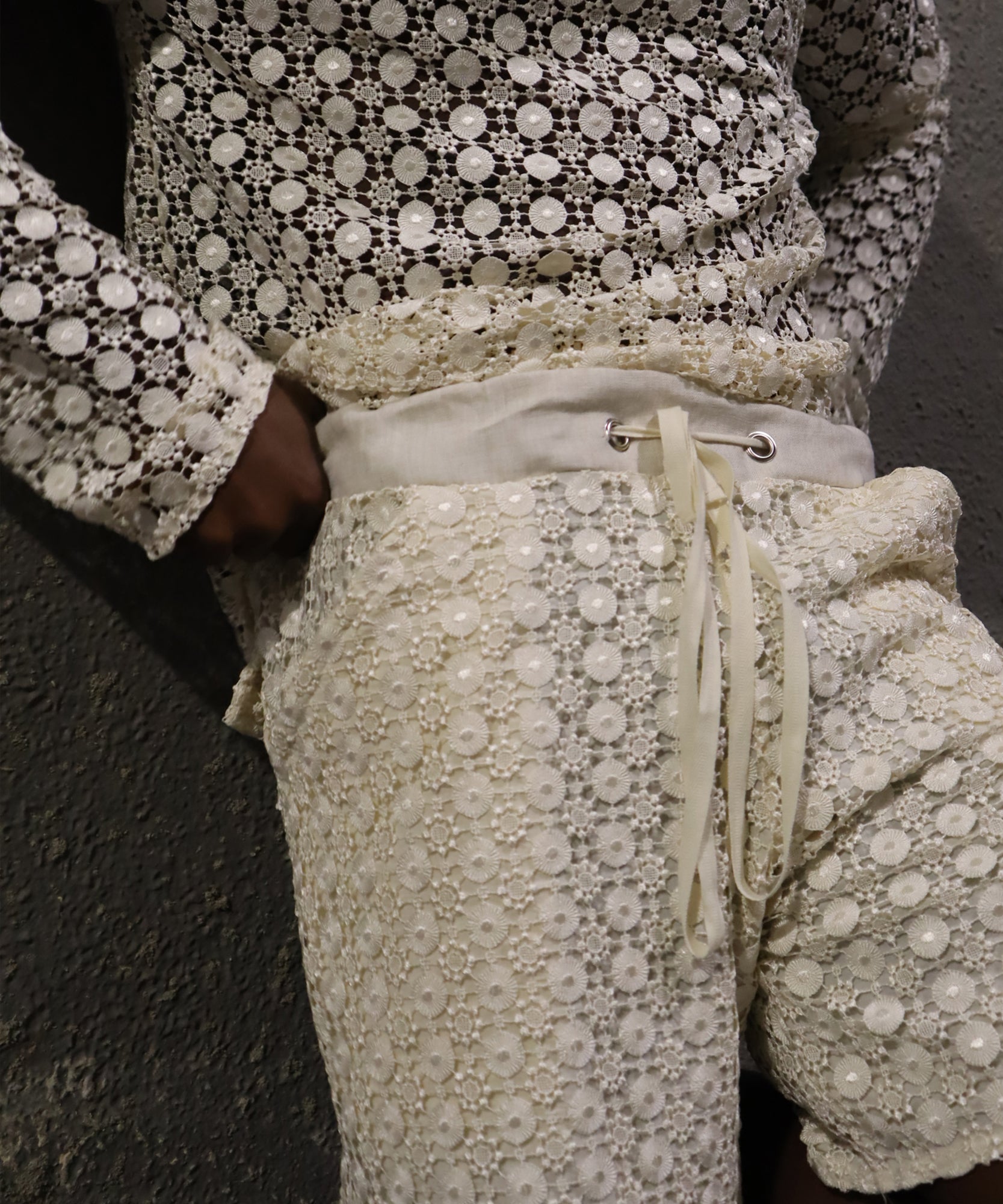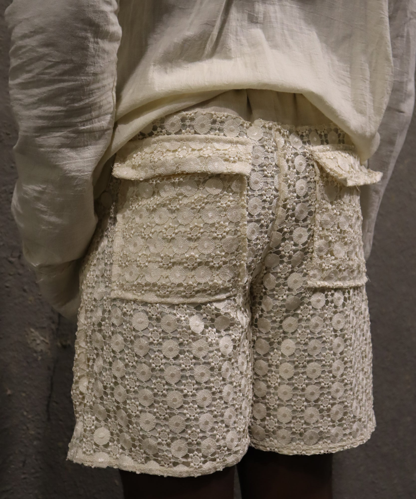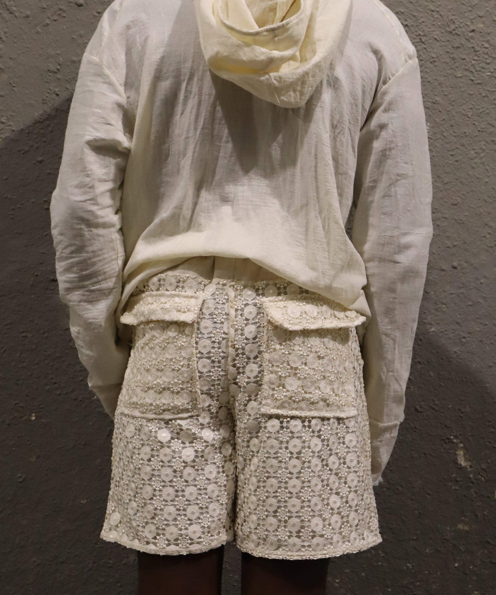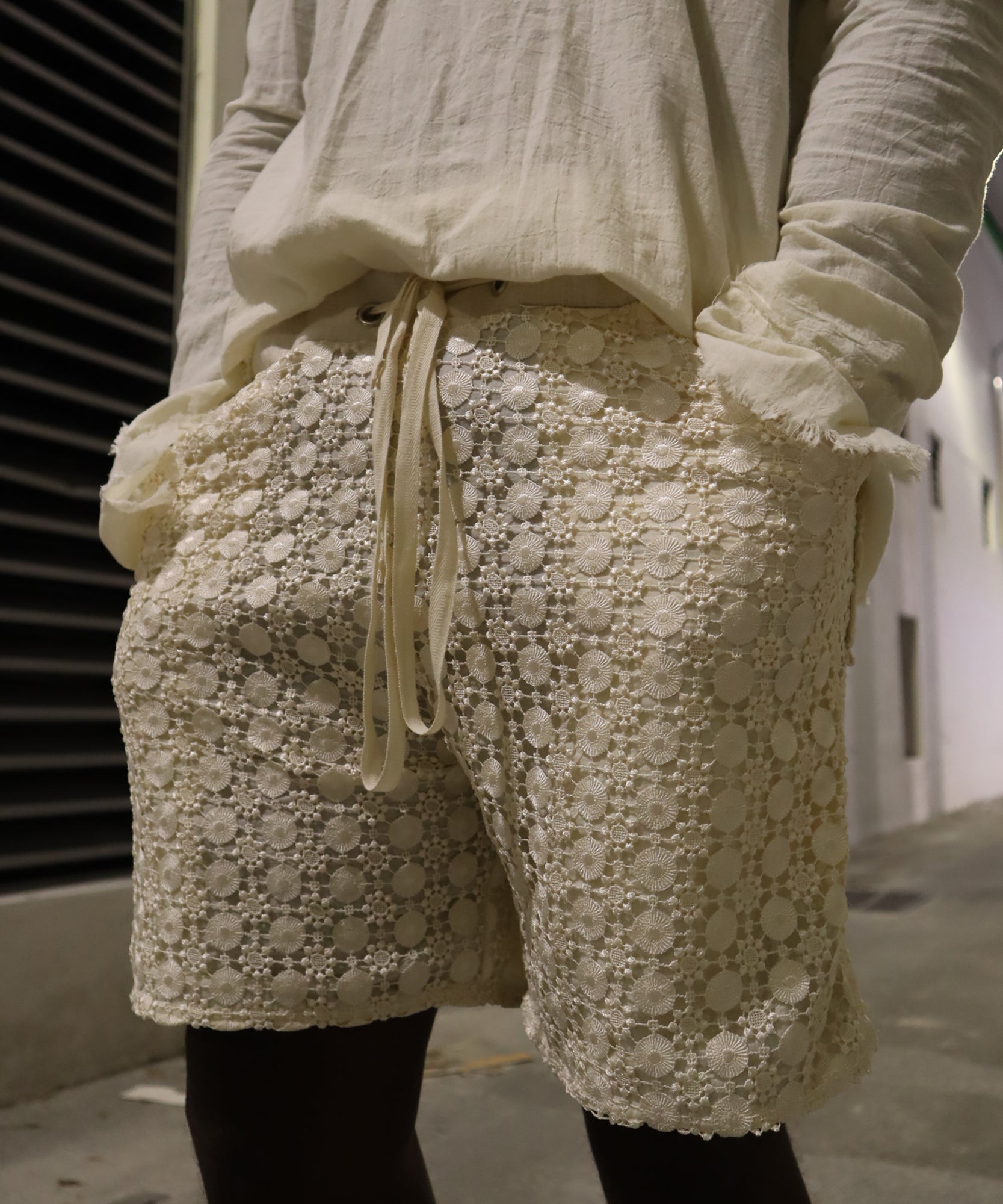 drawstring shorts, lining cotton gauze, overlay cotton mesh