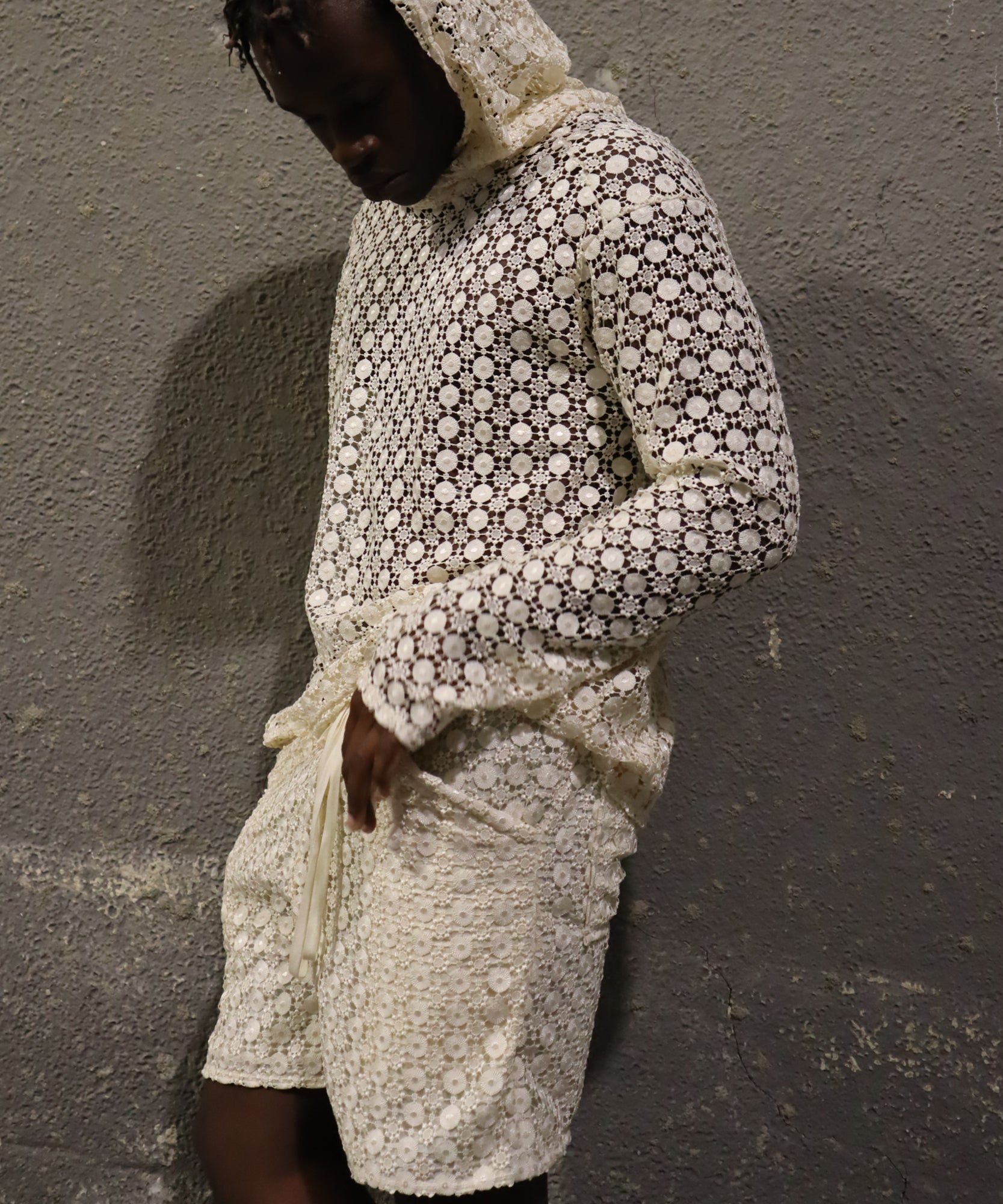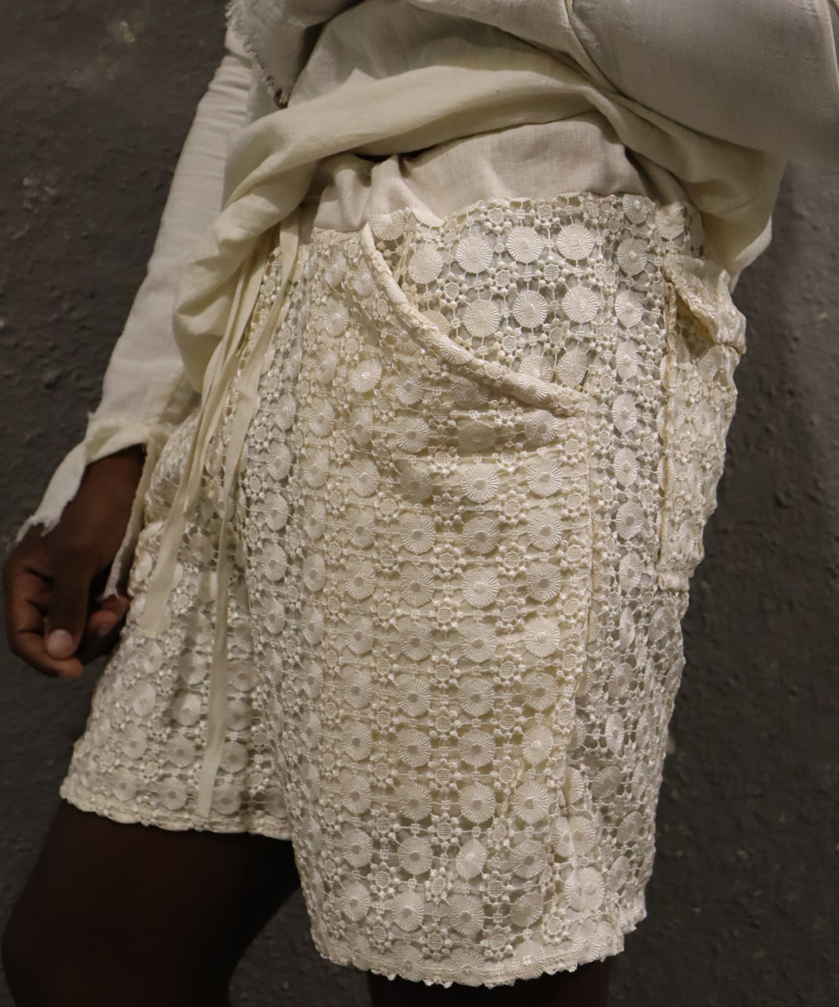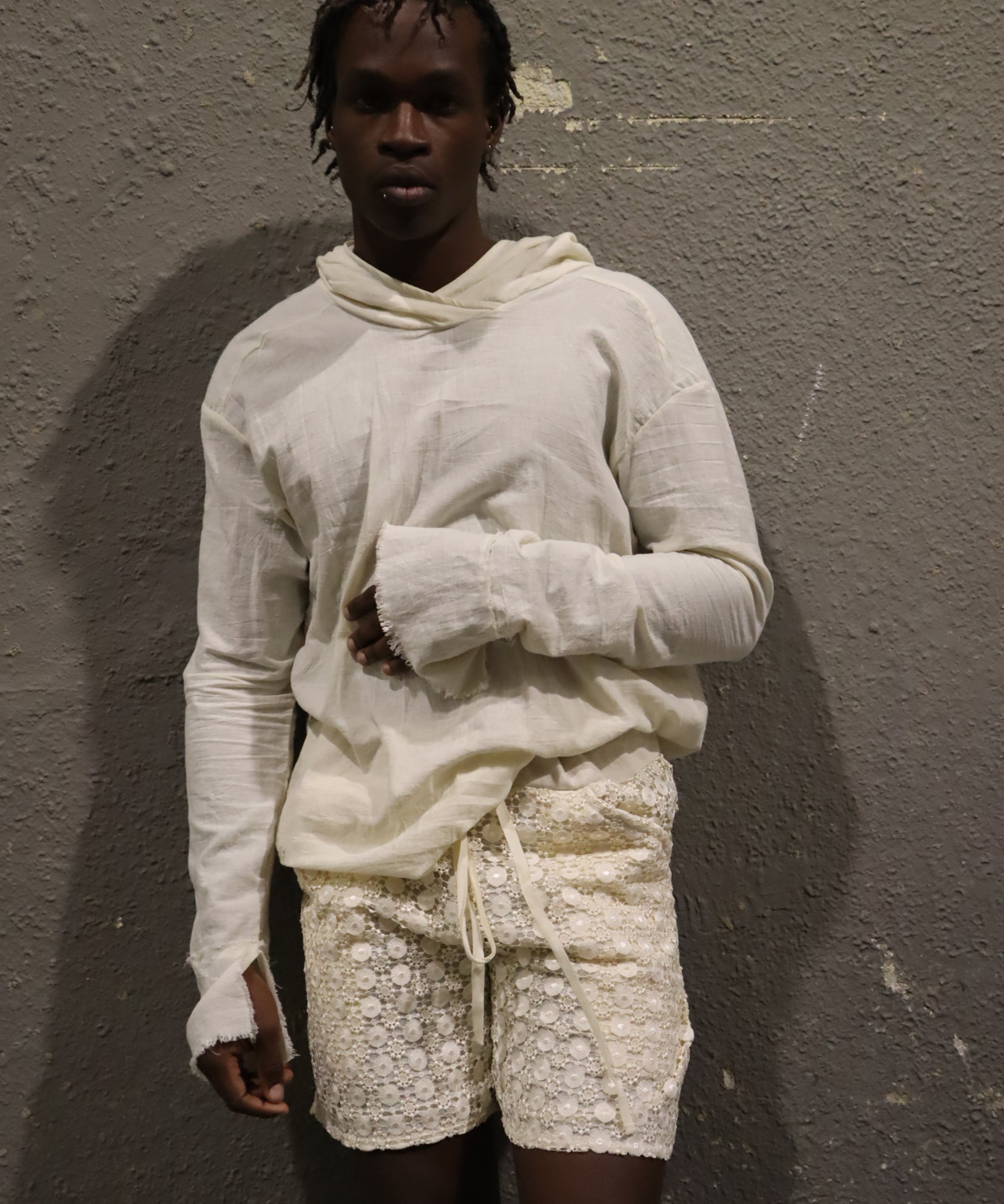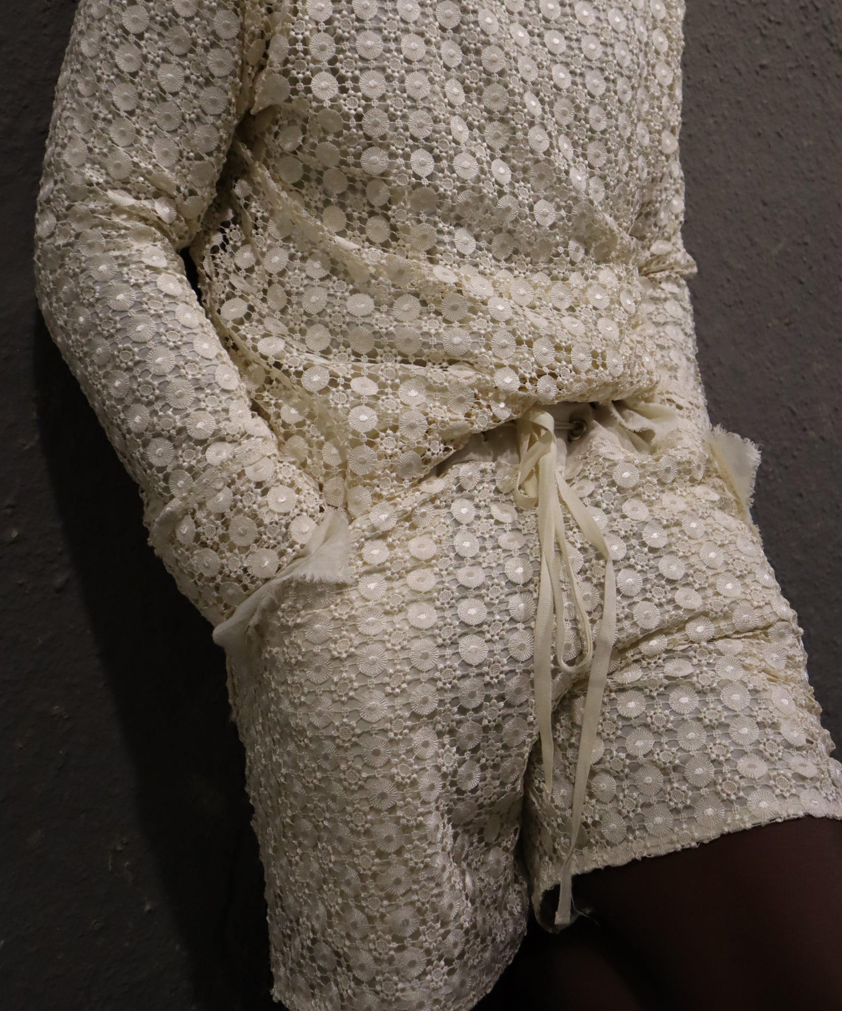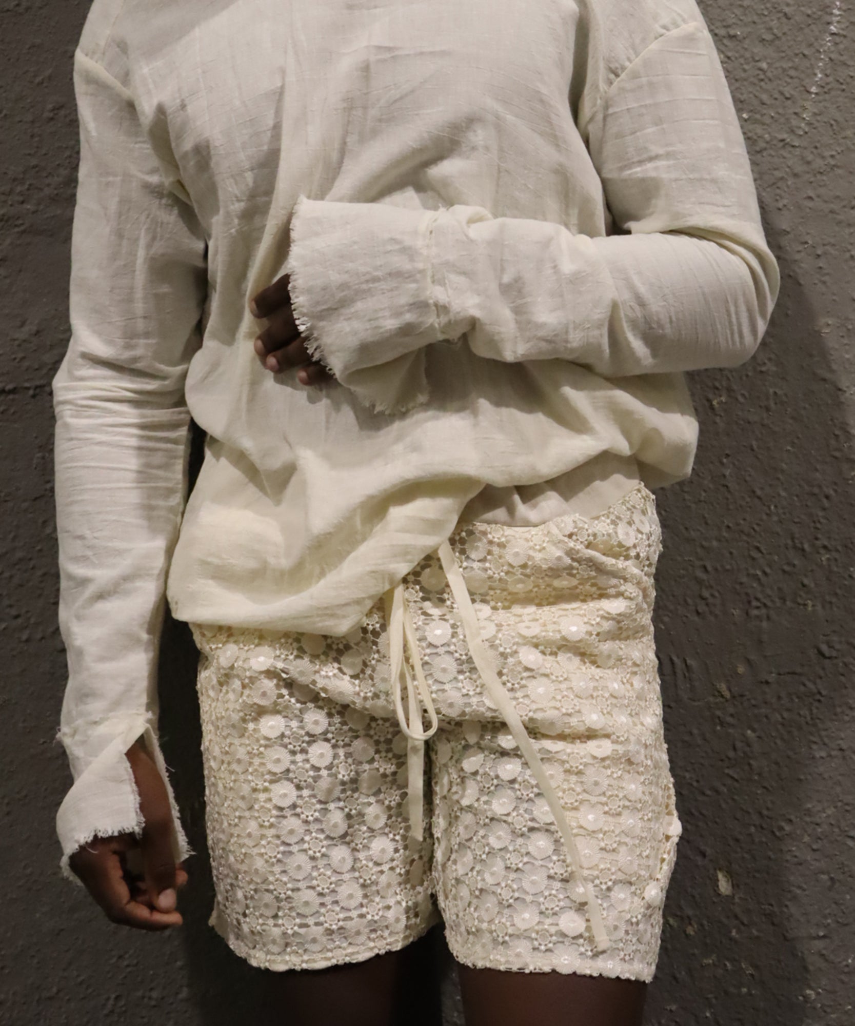 drawstring shorts, lining cotton gauze, overlay cotton mesh