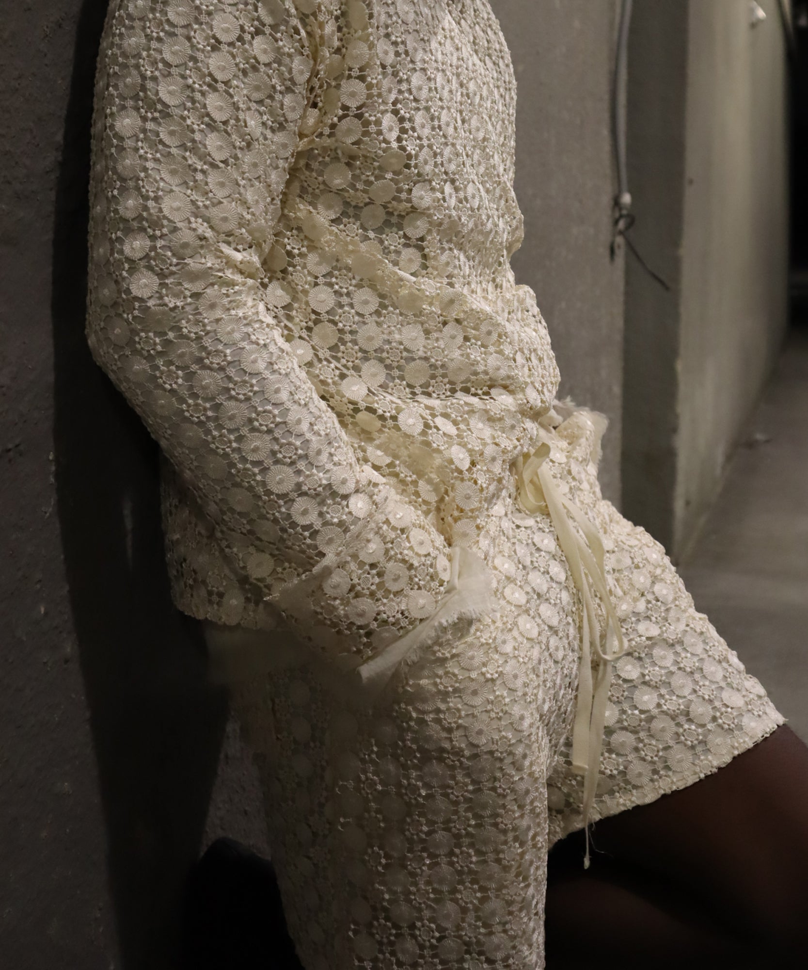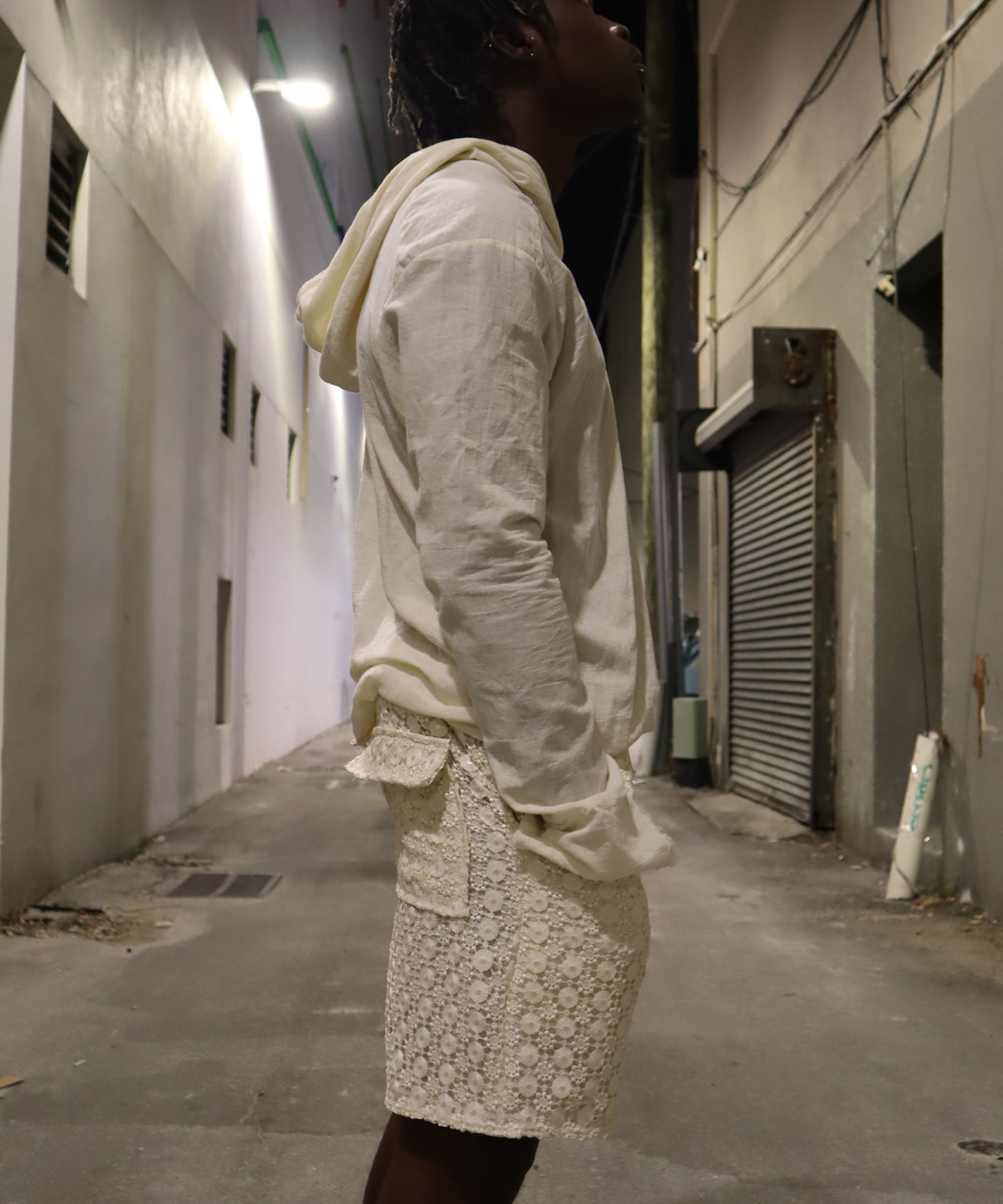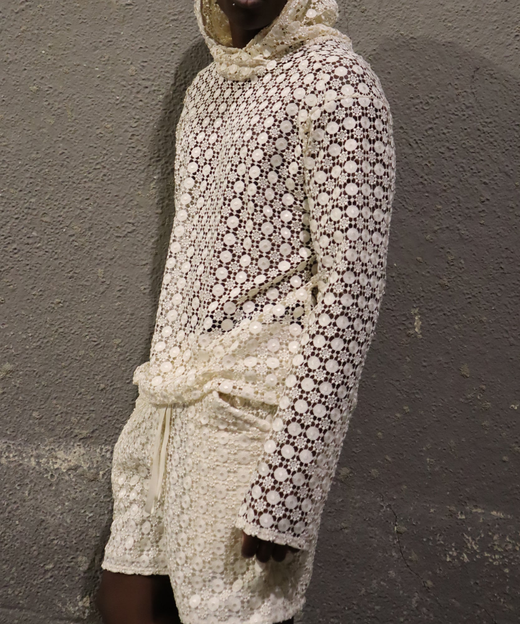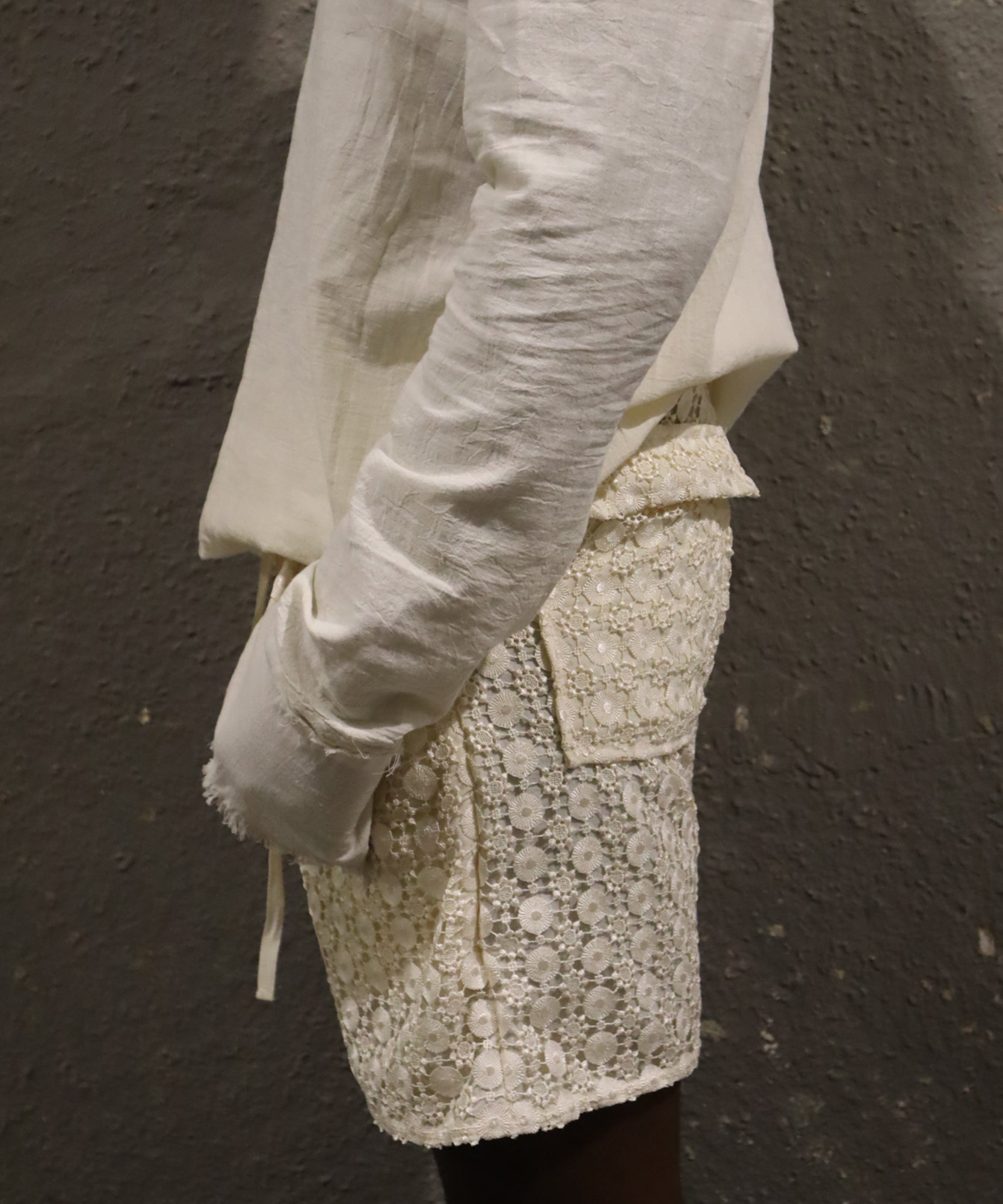 drawstring shorts, lining cotton gauze, overlay cotton mesh
