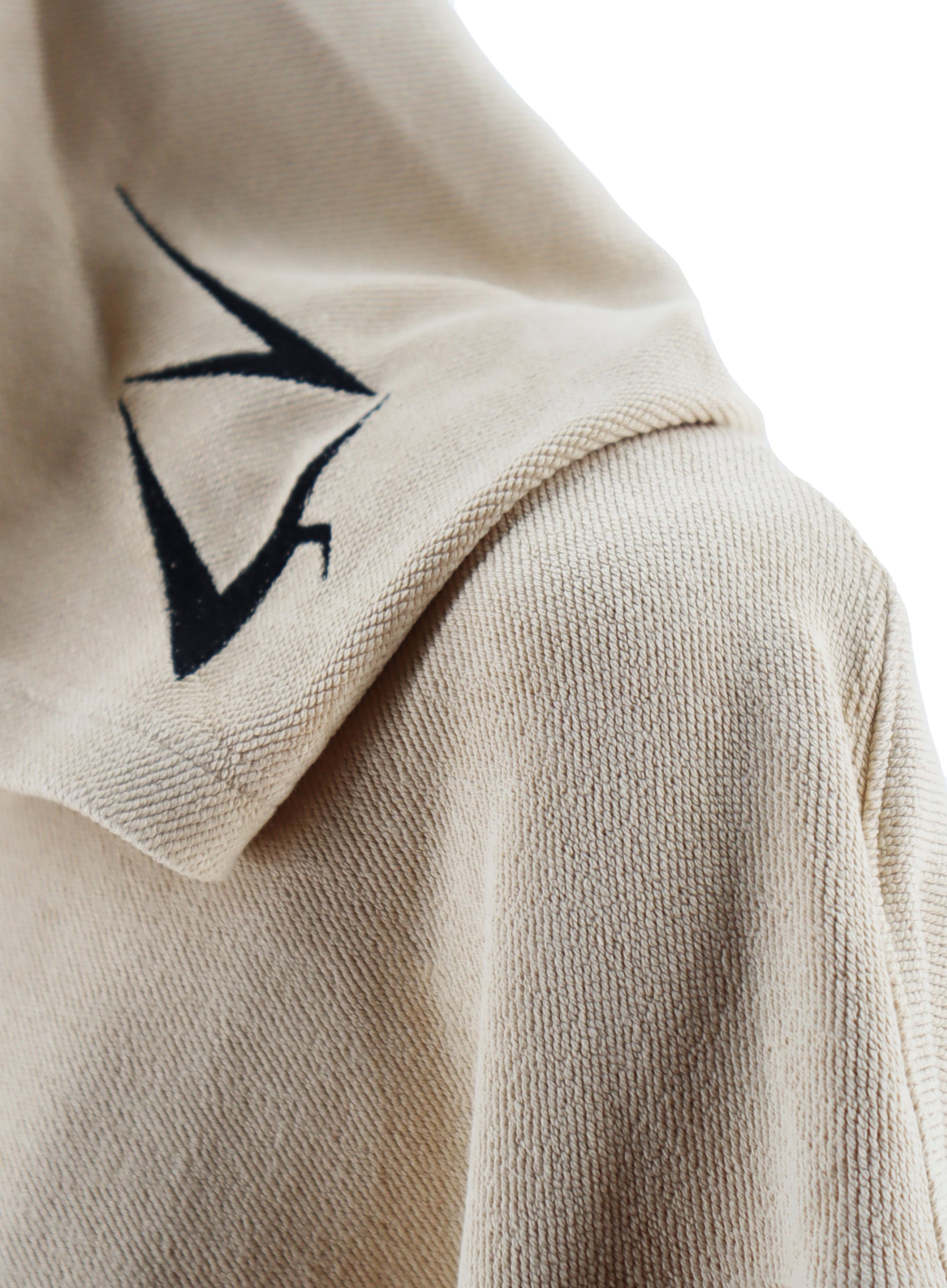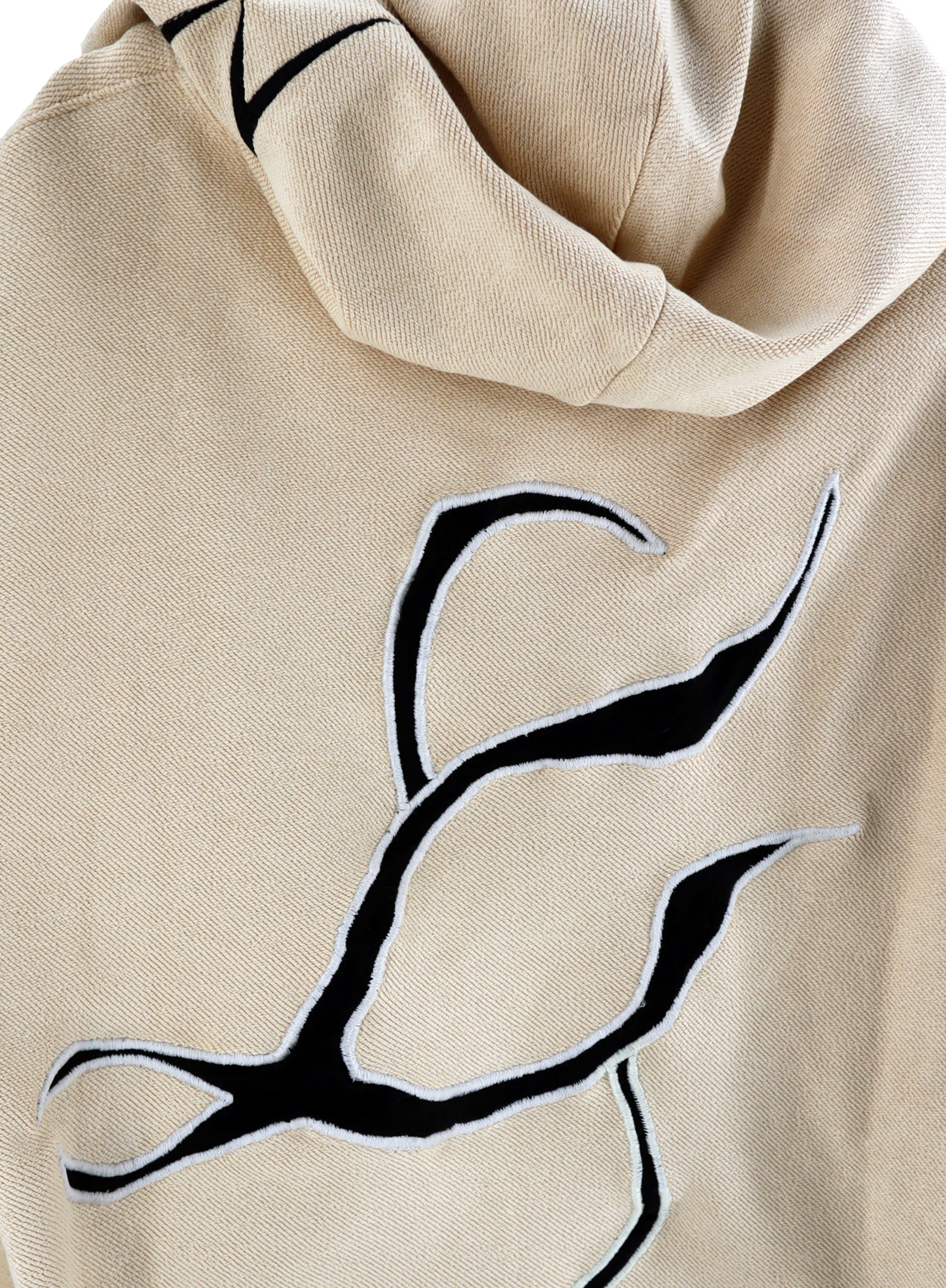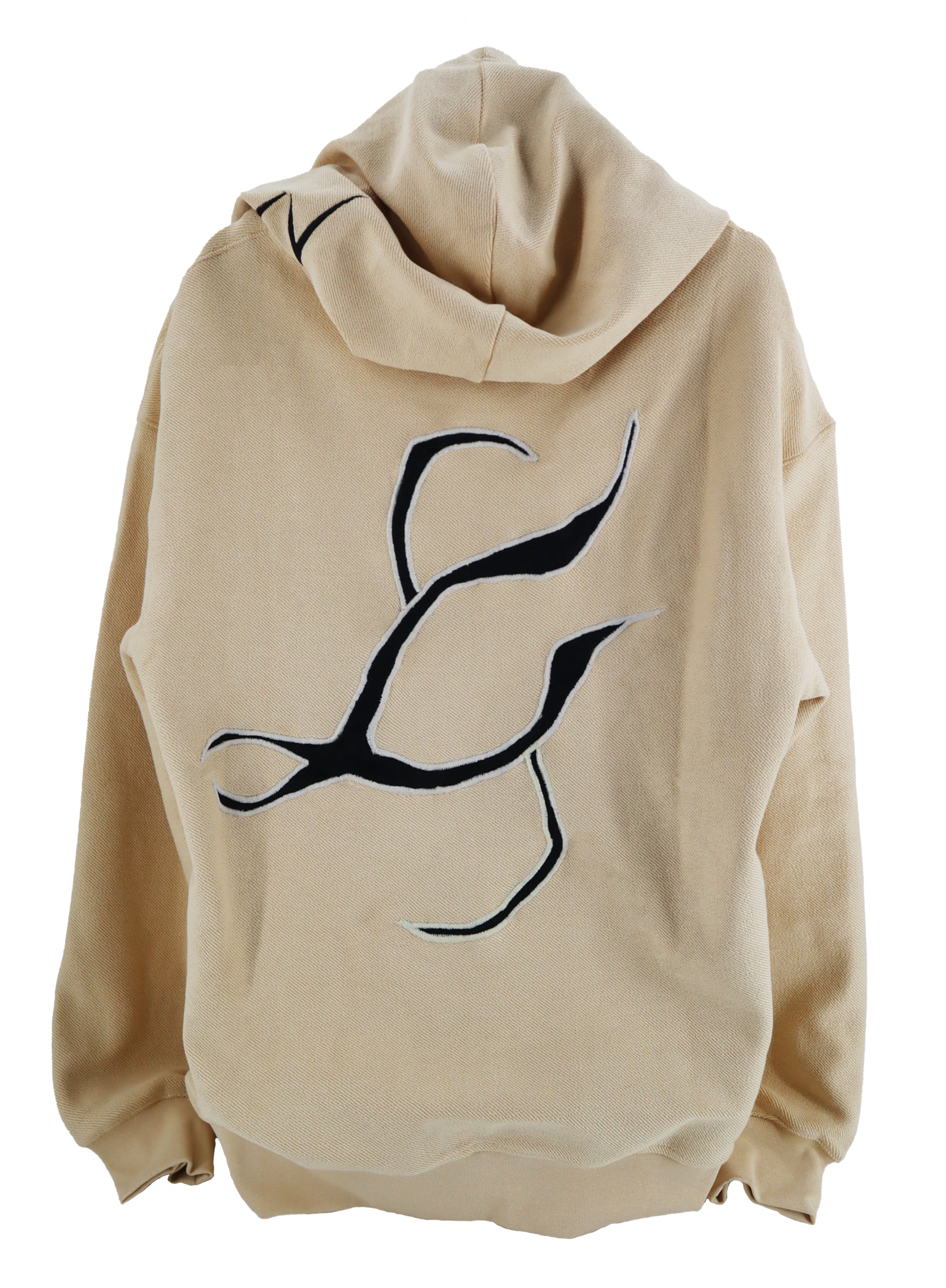the Shield Hoodies were inspired by medieval shields and other iconography from some of our favorite movies and video games. we wanted to find a way to repurpose fabric scraps from previous collections this year, as well as reimagine our “Natural Zip” hoodie in a way that felt authentic to us. each design is equipped with a special shield that will protect you when you wear it; we hope you can feel the good energy of this hoodie.