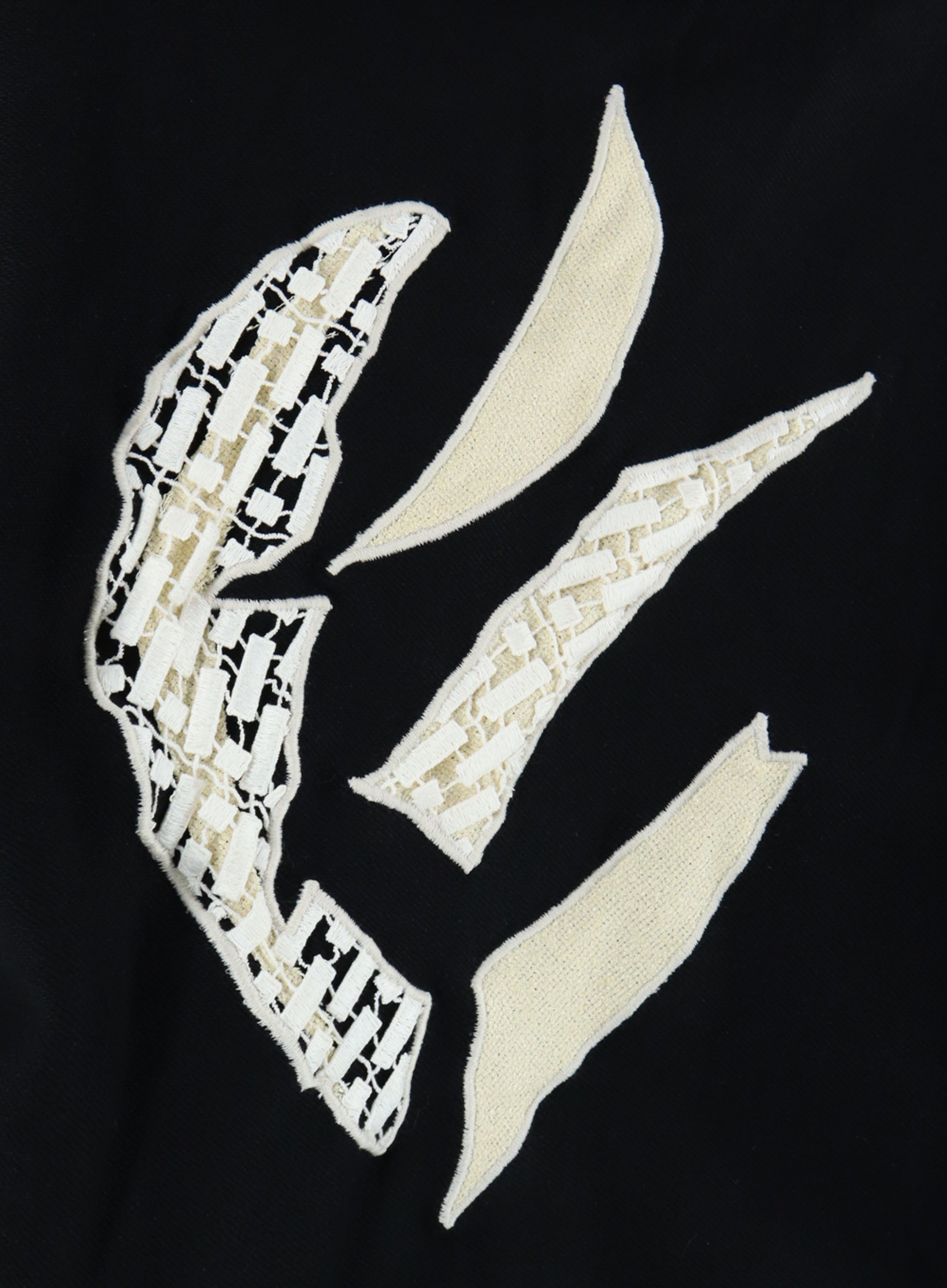✧ hand sewn shield decal constructed with jute linen and mesh lace