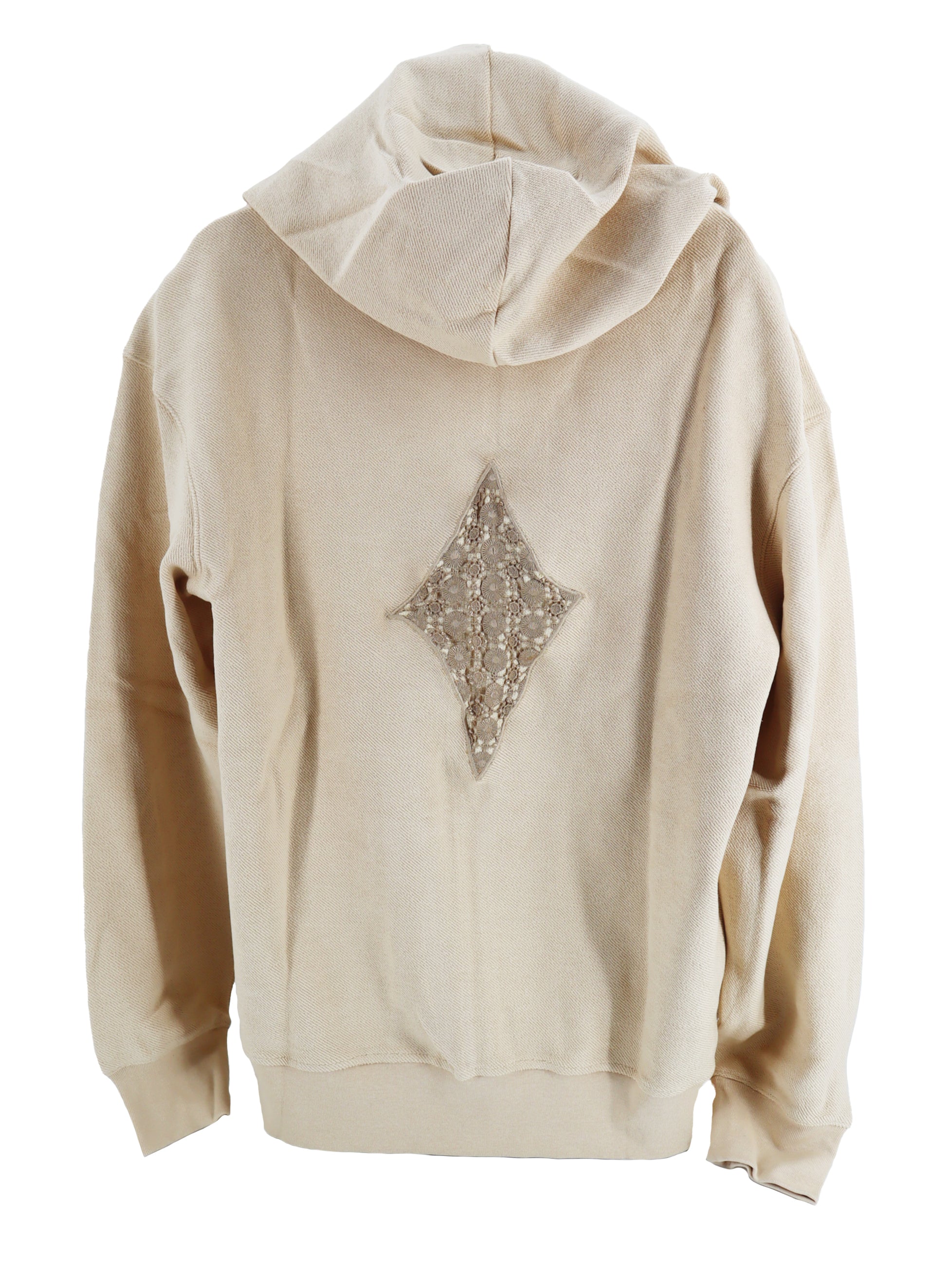 the Shield Hoodies were inspired by medieval shields and other iconography from some of our favorite movies and video games. we wanted to find a way to repurpose fabric scraps from previous collections this year, as well as reimagine our “Natural Zip” hoodie in a way that felt authentic to us. each design is equipped with a special shield that will protect you when you wear it; we hope you can feel the good energy of this hoodie.