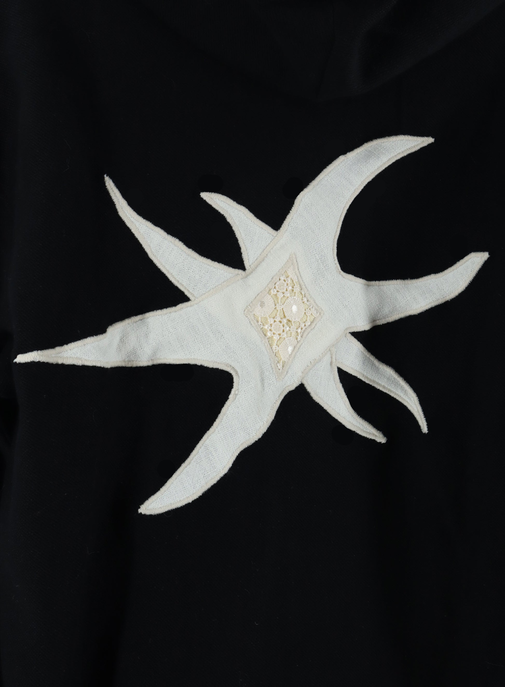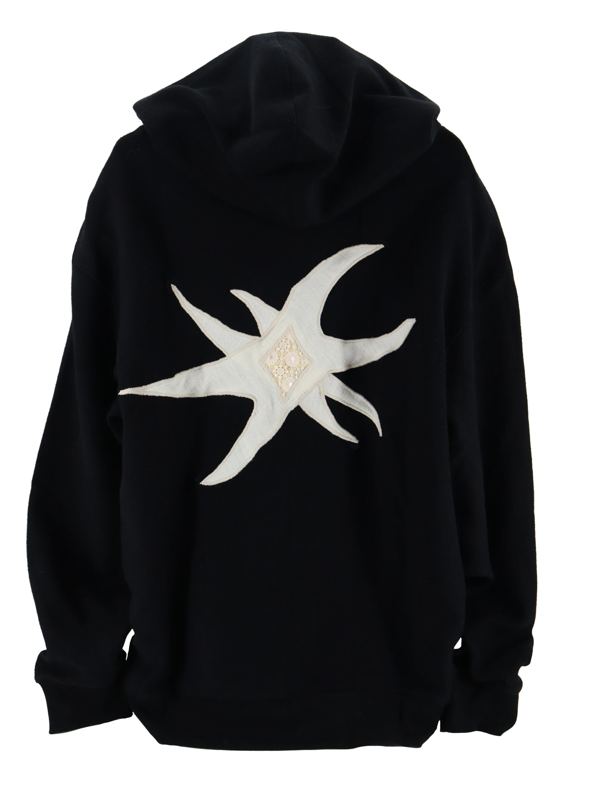 the Shield Hoodies were inspired by medieval shields and other iconography from some of our favorite movies and video games. we wanted to find a way to repurpose fabric scraps from previous collections this year, as well as reimagine our “Natural Zip” hoodie in a way that felt authentic to us. each design is equipped with a special shield that will protect you when you wear it; we hope you can feel the good energy of this hoodie.