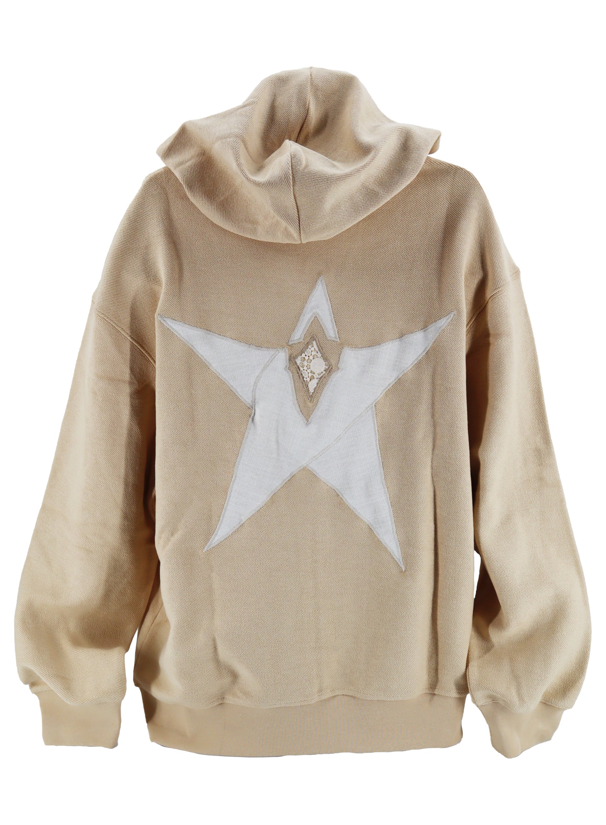 the Shield Hoodies were inspired by medieval shields and other iconography from some of our favorite movies and video games. we wanted to find a way to repurpose fabric scraps from previous collections this year, as well as reimagine our “Natural Zip” hoodie in a way that felt authentic to us. each design is equipped with a special shield that will protect you when you wear it; we hope you can feel the good energy of this hoodie.