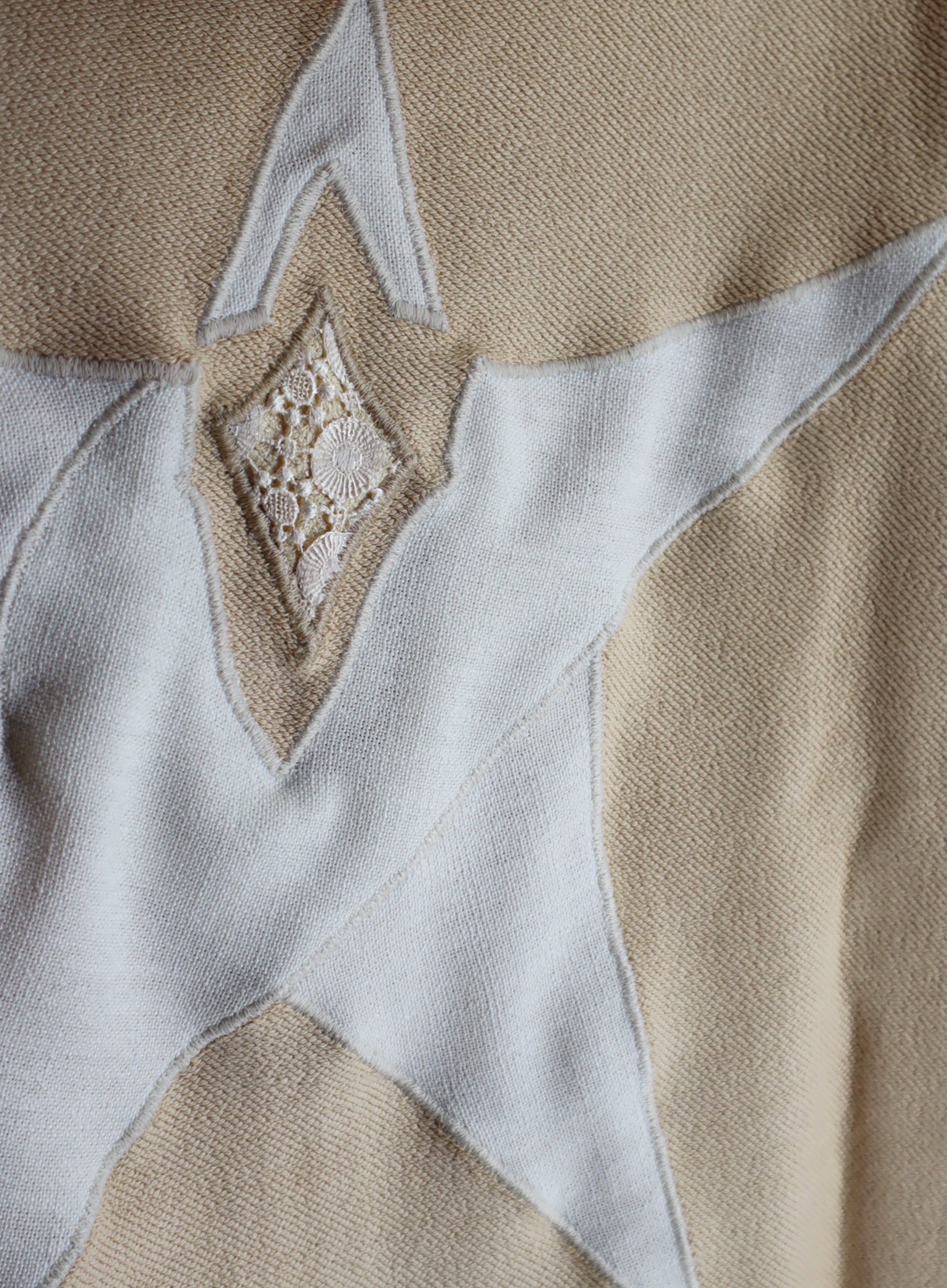 ✧ hand sewn shield decal constructed with ivory linen and eyelet lace