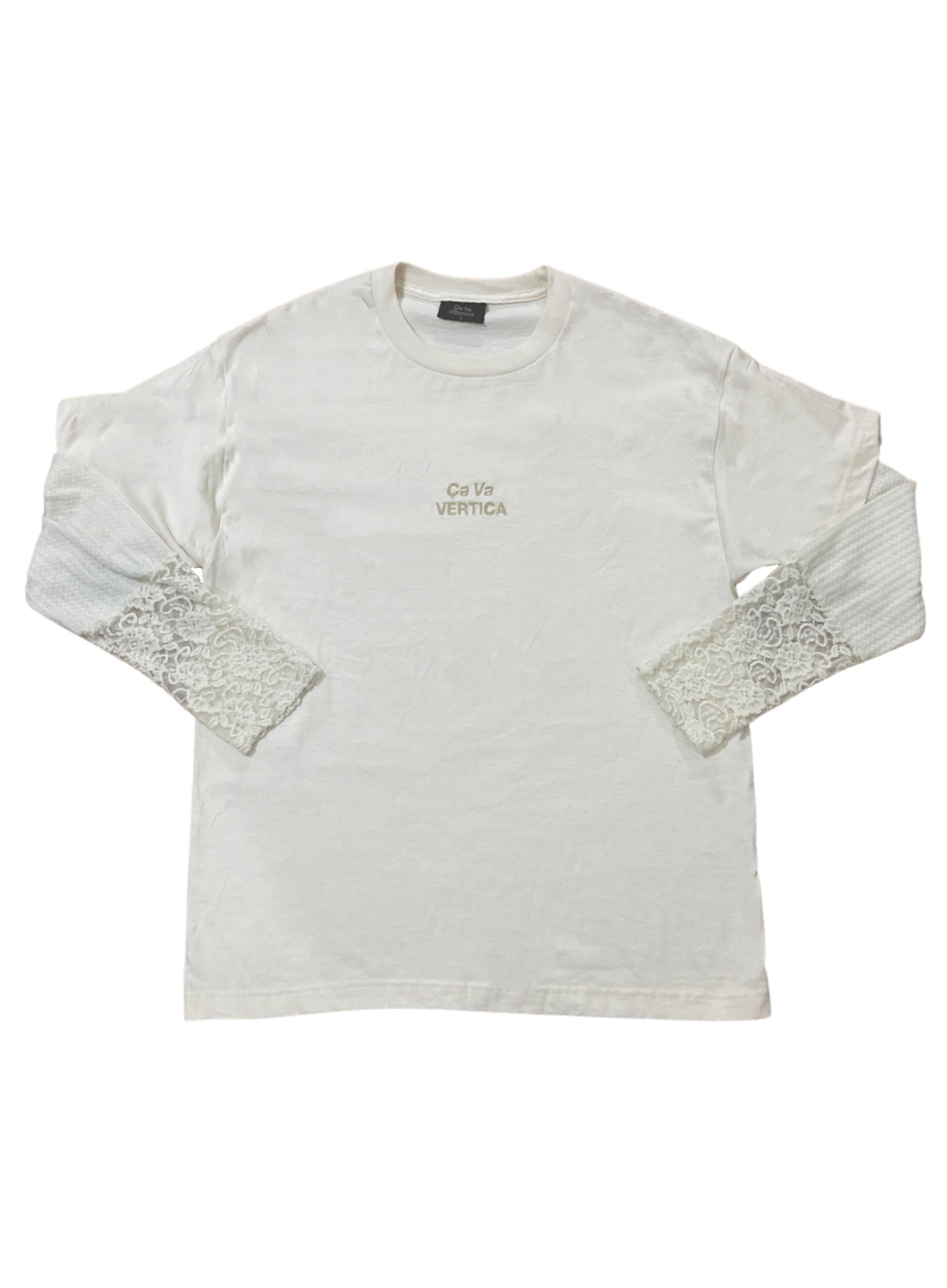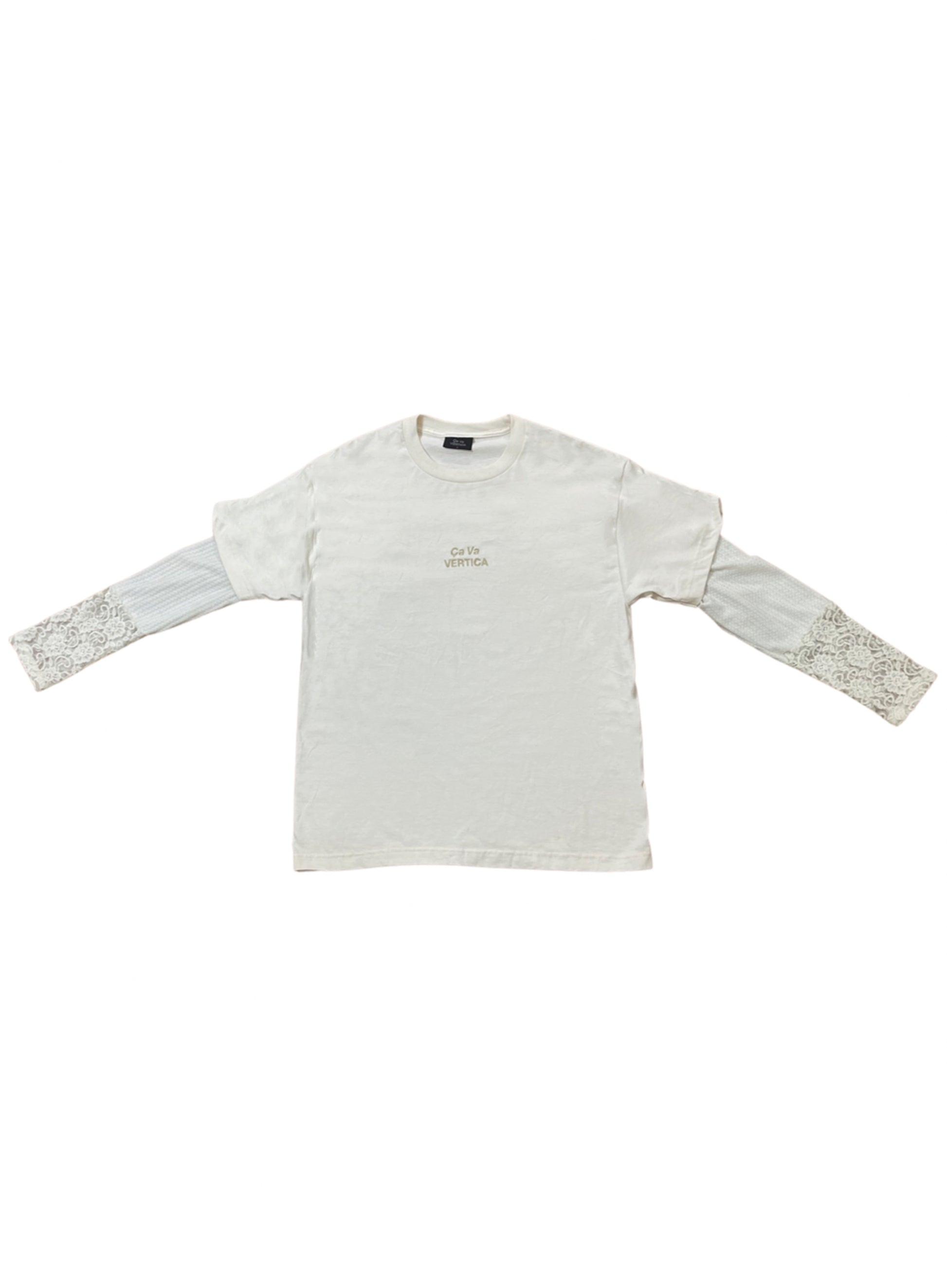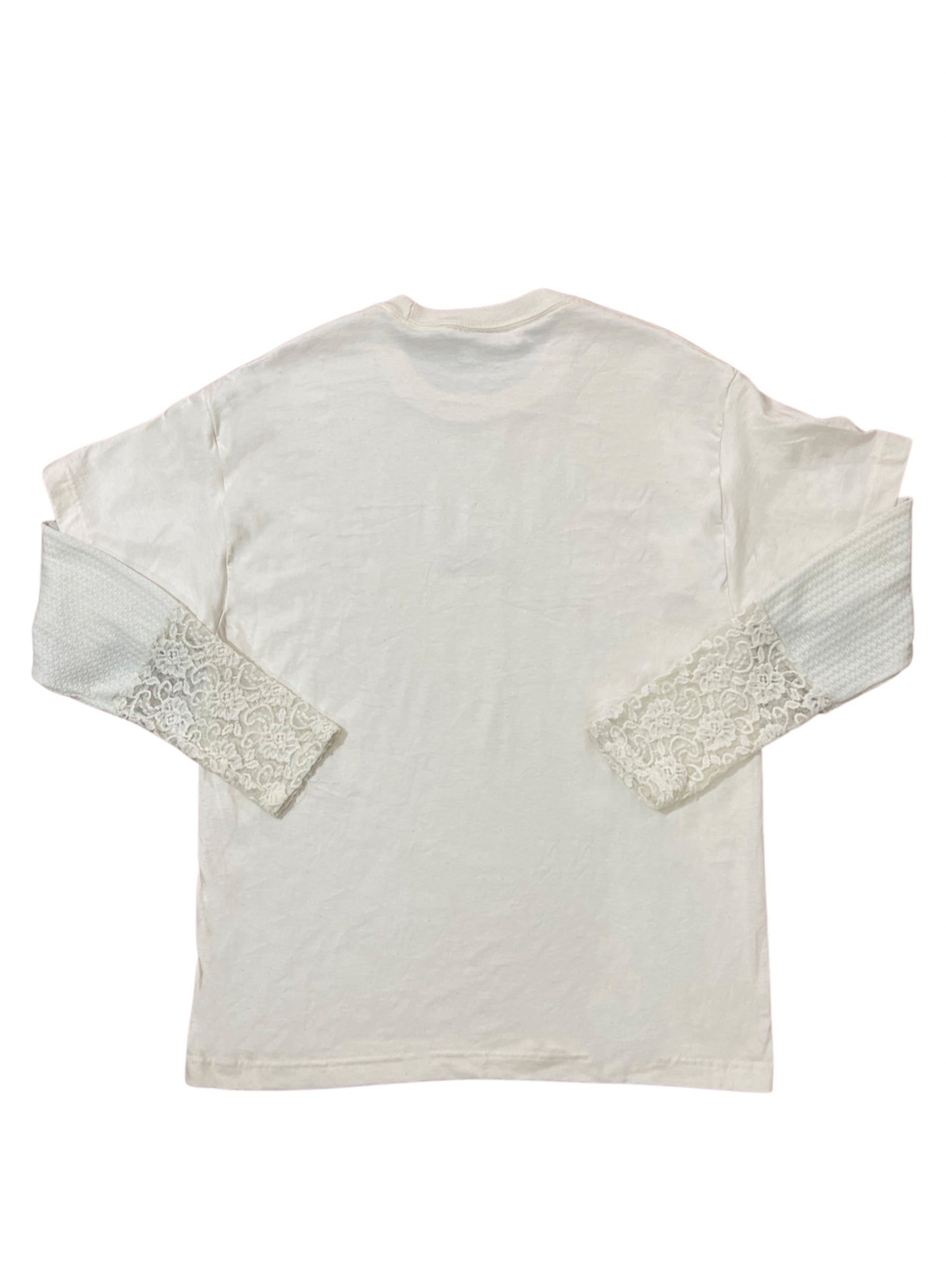 Second hand lace sleeves, 100% cotton tee, & embroidery